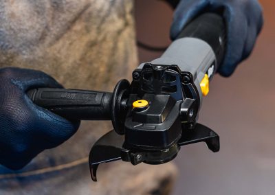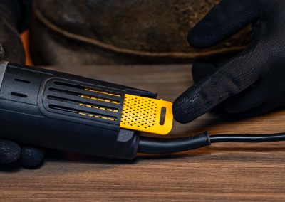 - O botão de acionamento duplo evita que a esmerilhadeira seja ligada acidentalmente, reduzindo o risco de lesões.