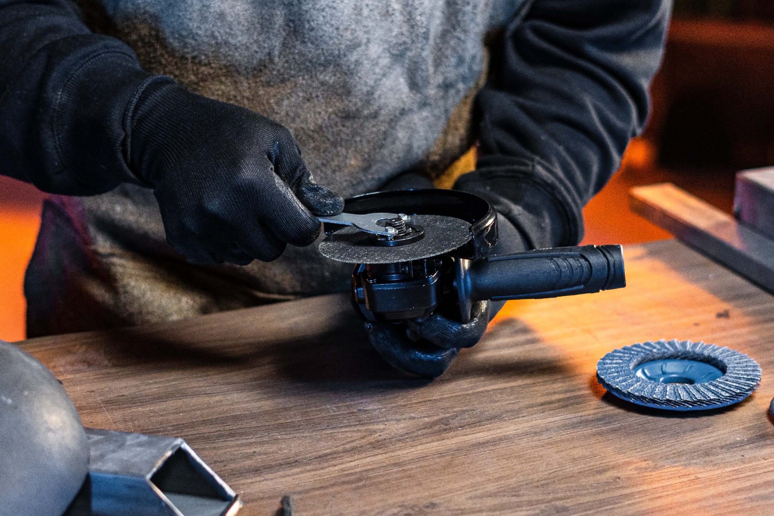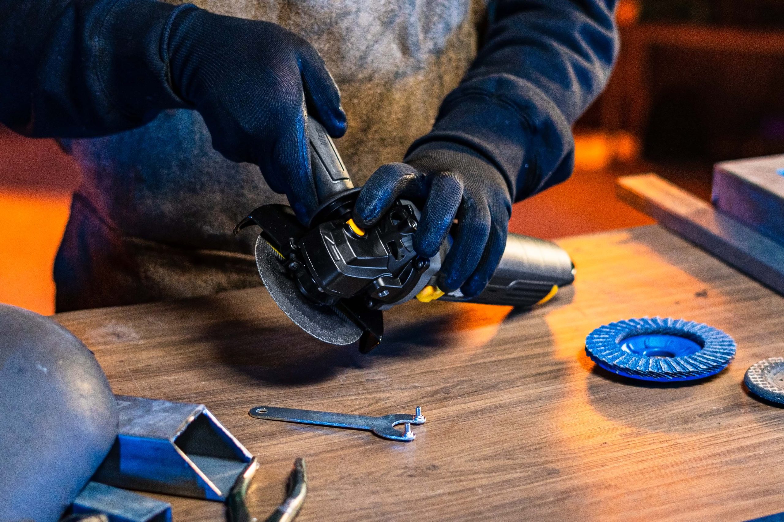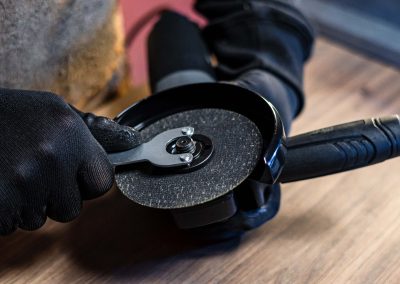 - Faça a troca rápida de discos de corte, lixamento ou polimento utilizando a chave para troca de disco.