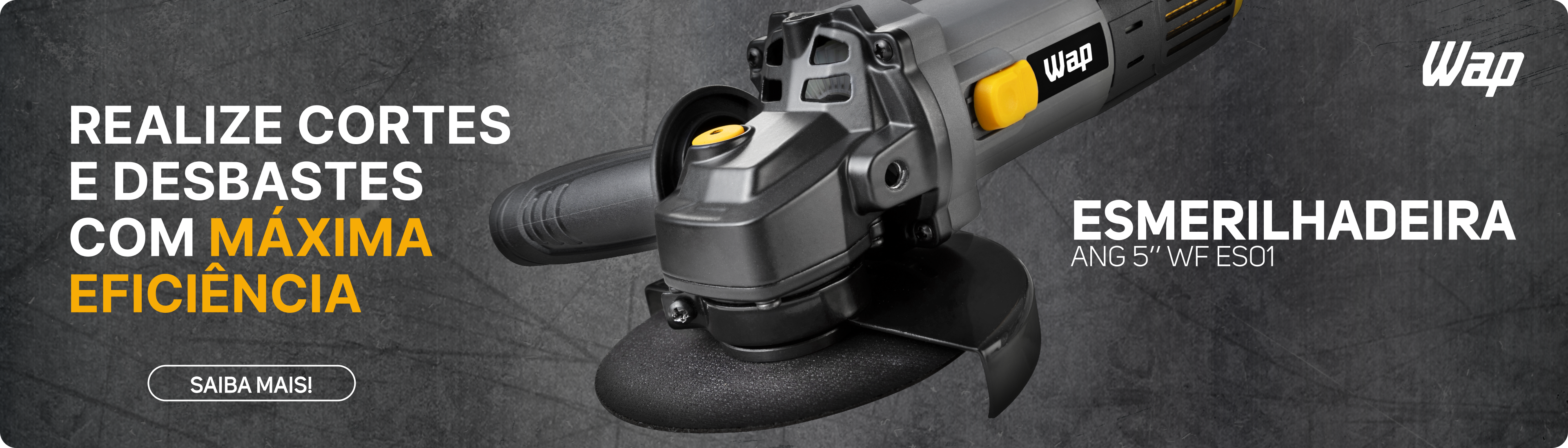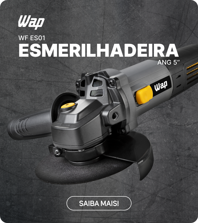 Combine potência, versatilidade e segurança para entregar desempenho máximo em cada tarefa! Escolha a ESMERILHADEIRA ANGULAR 5” WAP WF ES01 para cumprir os desafios dos seus projetos com autonomia total.