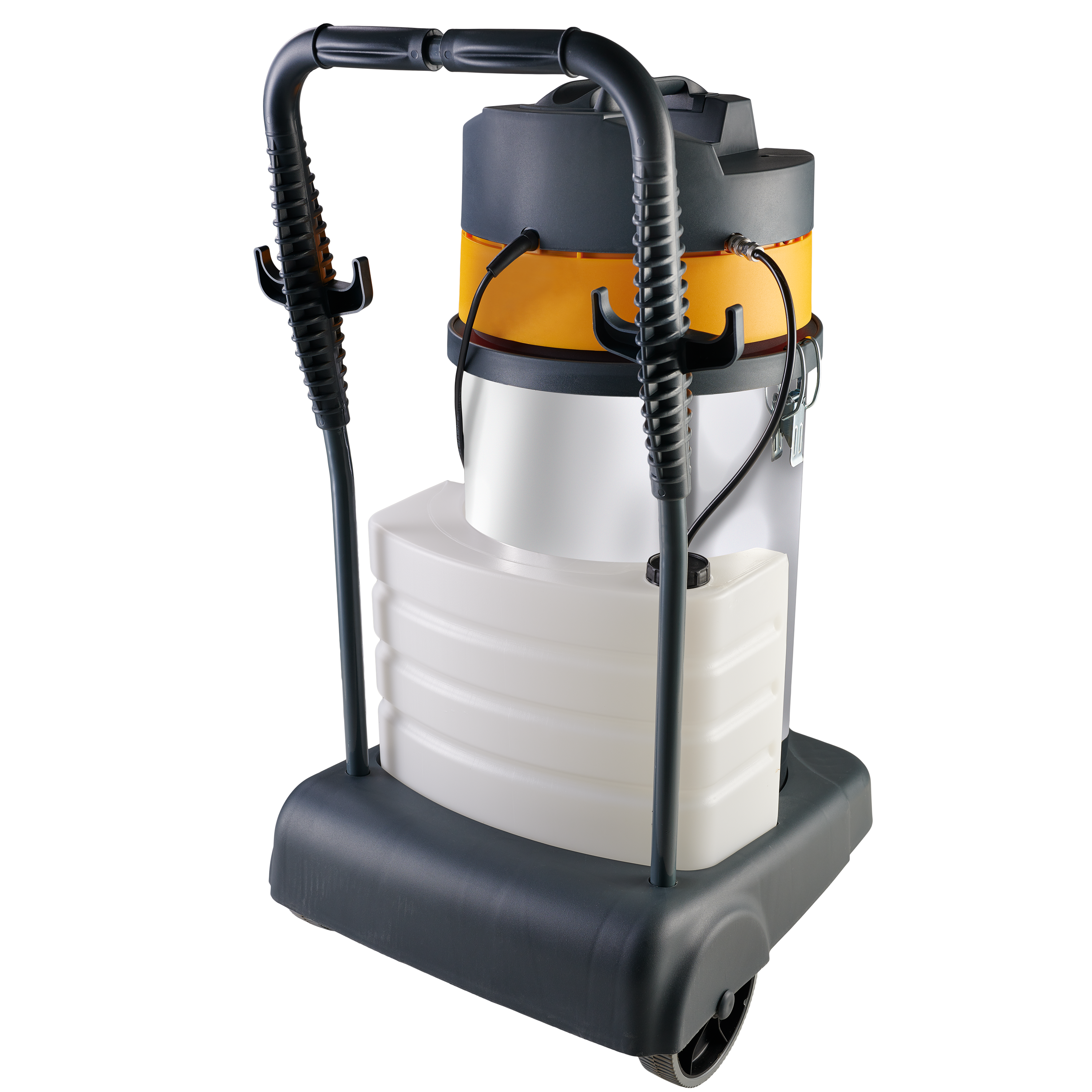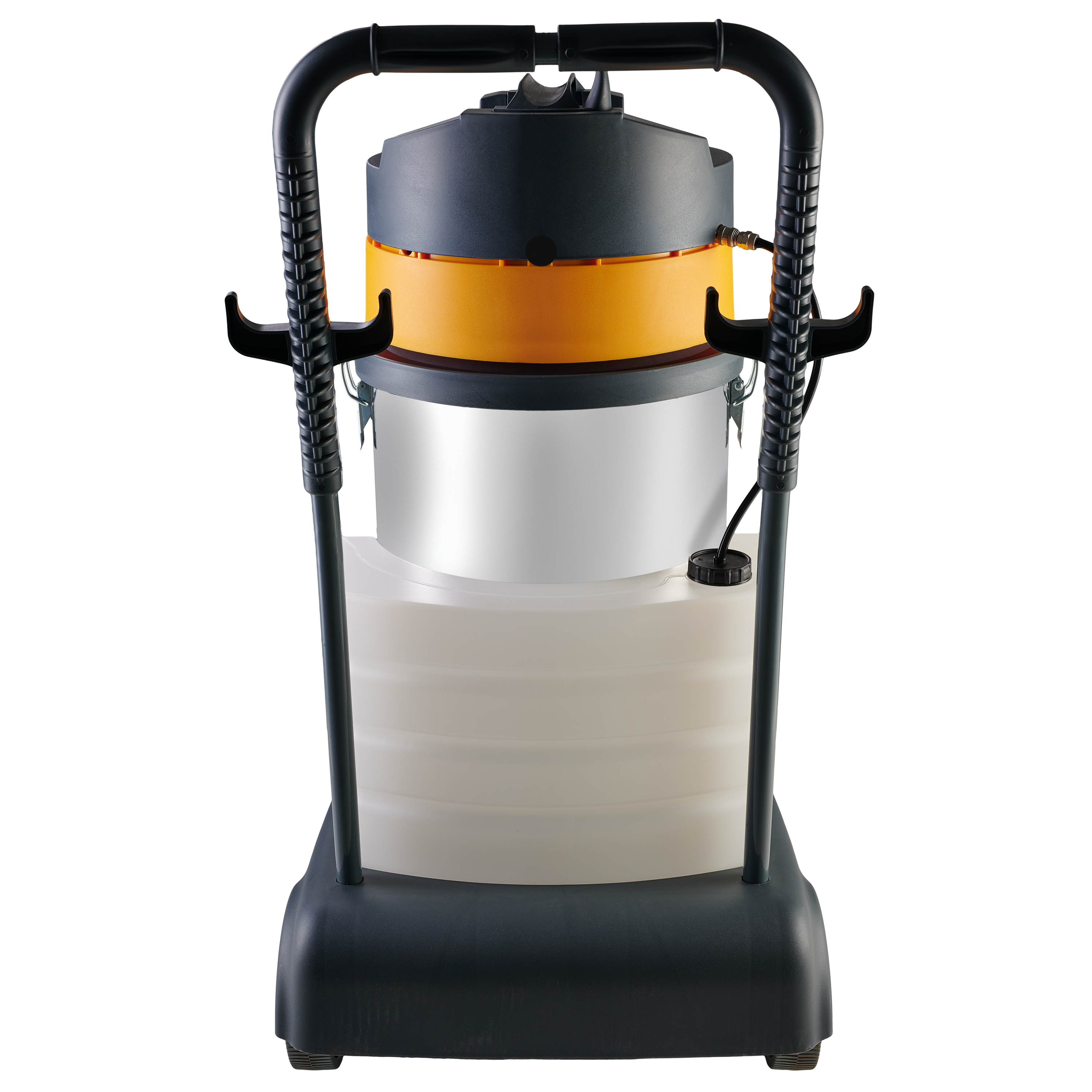 Equipado com exclusivo sistema de dreno para esgotamento da água suja, proporcionando mais rapidez na limpeza, mangueira flexível de 2,5 metros, 1 Extensão reta em aço inoxidável, 1 Extensão curva em aço inoxidável e tanque de inox, que conferem maior resistência e durabilidade ao produto.