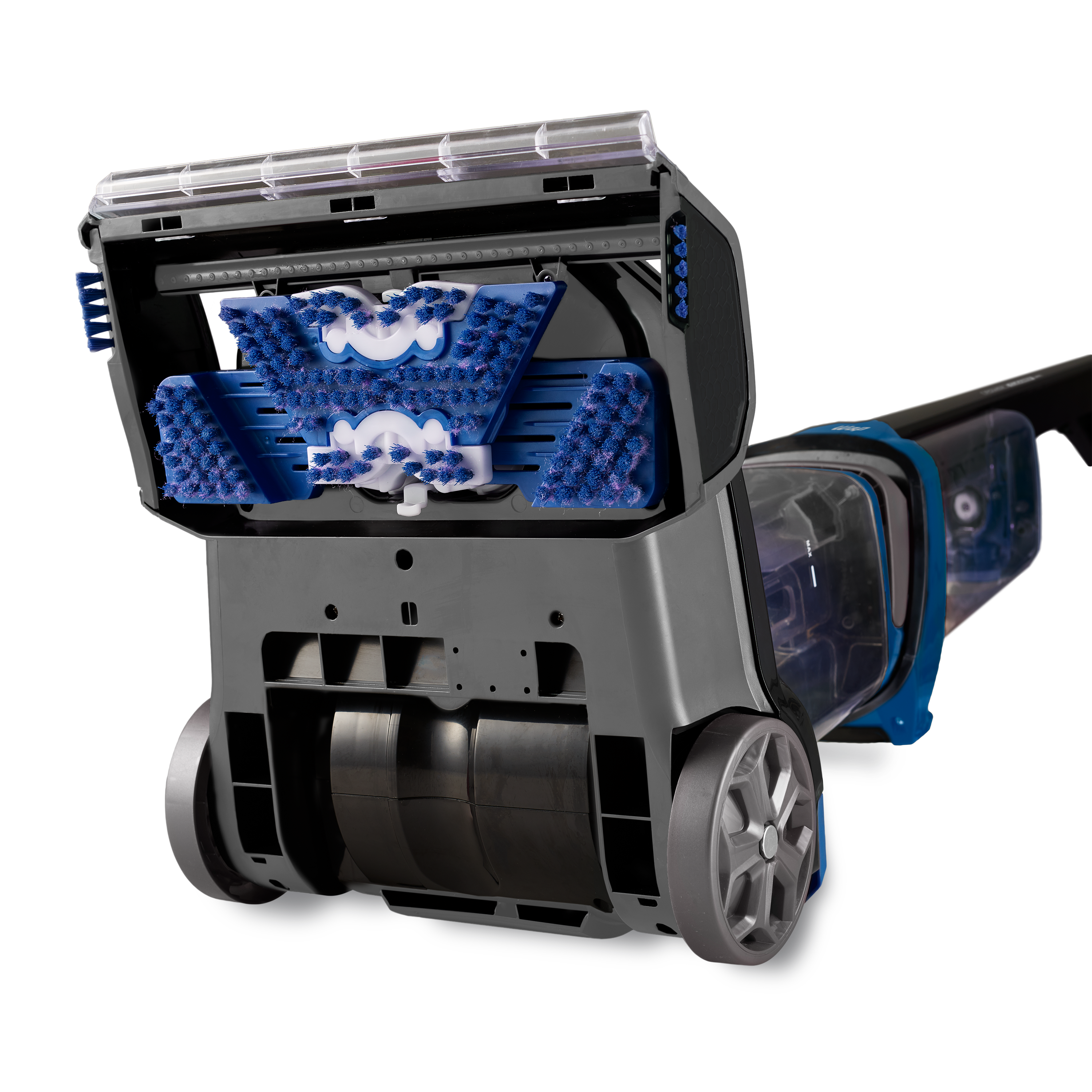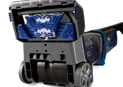 - Possui a exclusiva escova elétrica oscilante 2 em 1 para pisos quentes e frios, que esfrega superfícies tornando ambientes totalmente limpos.