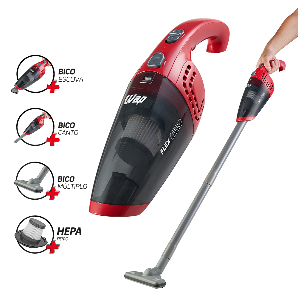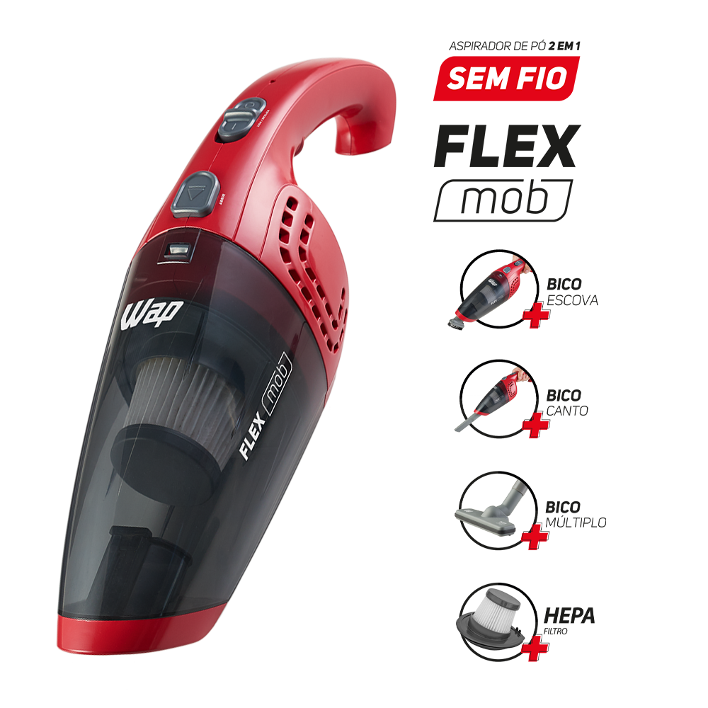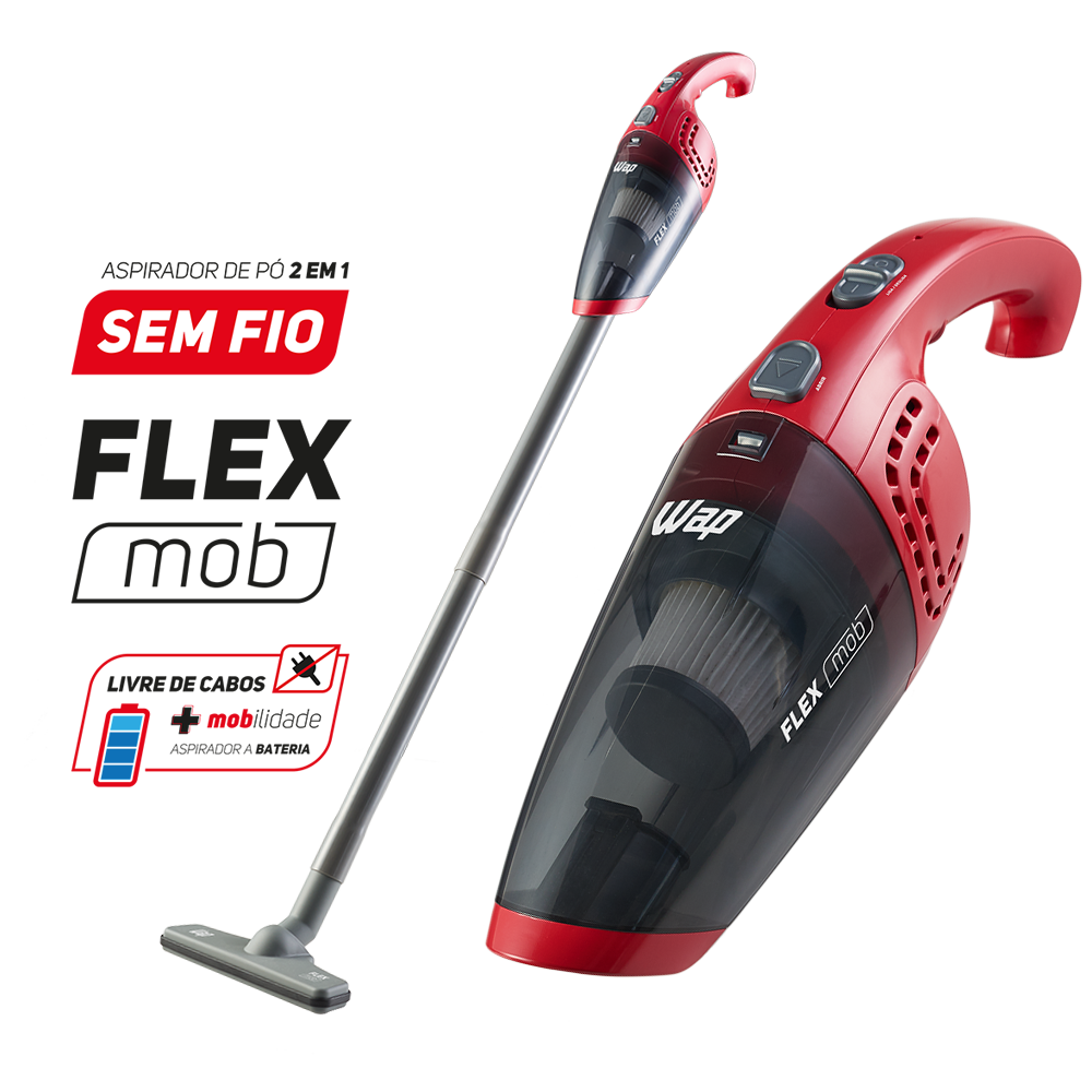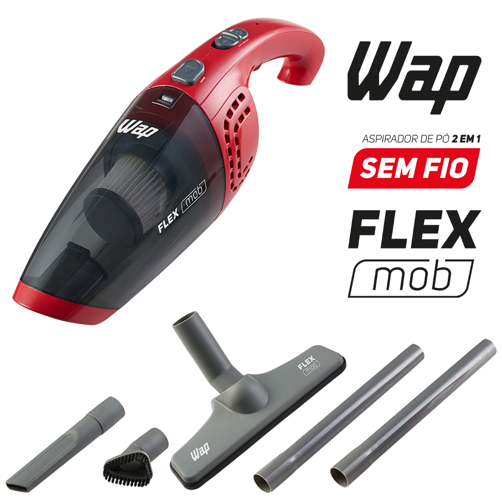 Limpar a casa e o carro todos os dias é muito mais rápido e fácil com o aspirador de pó sem fio WAP Flex MOB 2 em 1. Livre-se dos cabos e fios que te amarram e não se preocupe mais com tomadas e extensões na hora da faxina.