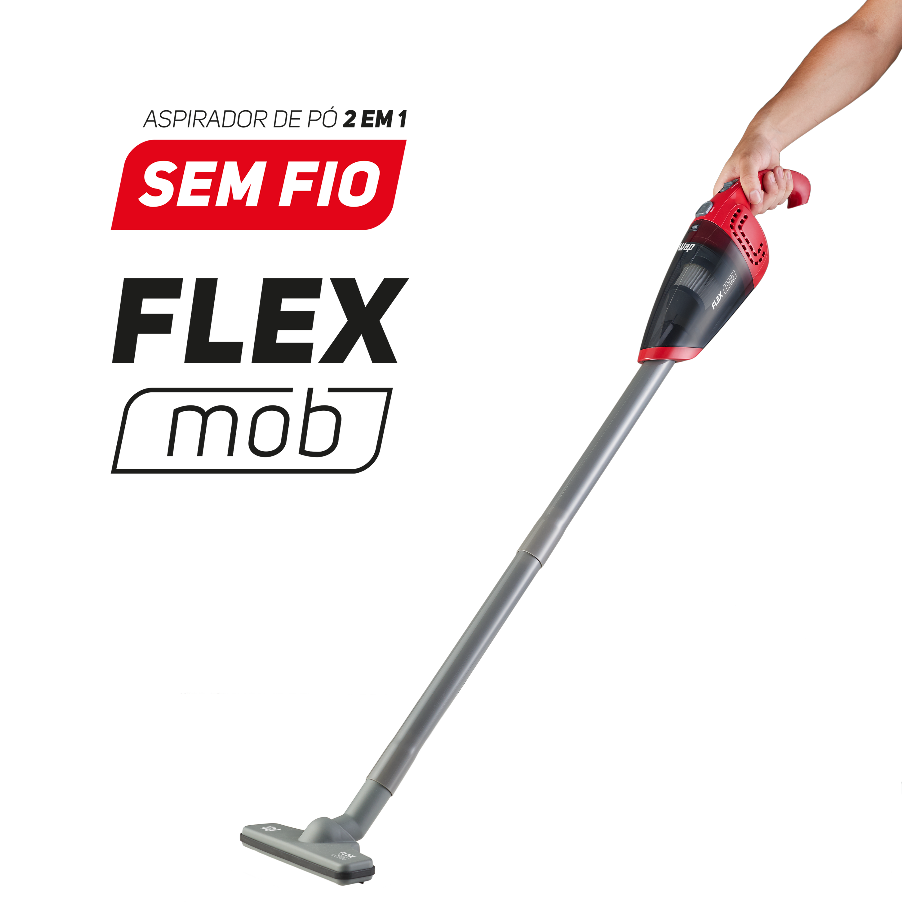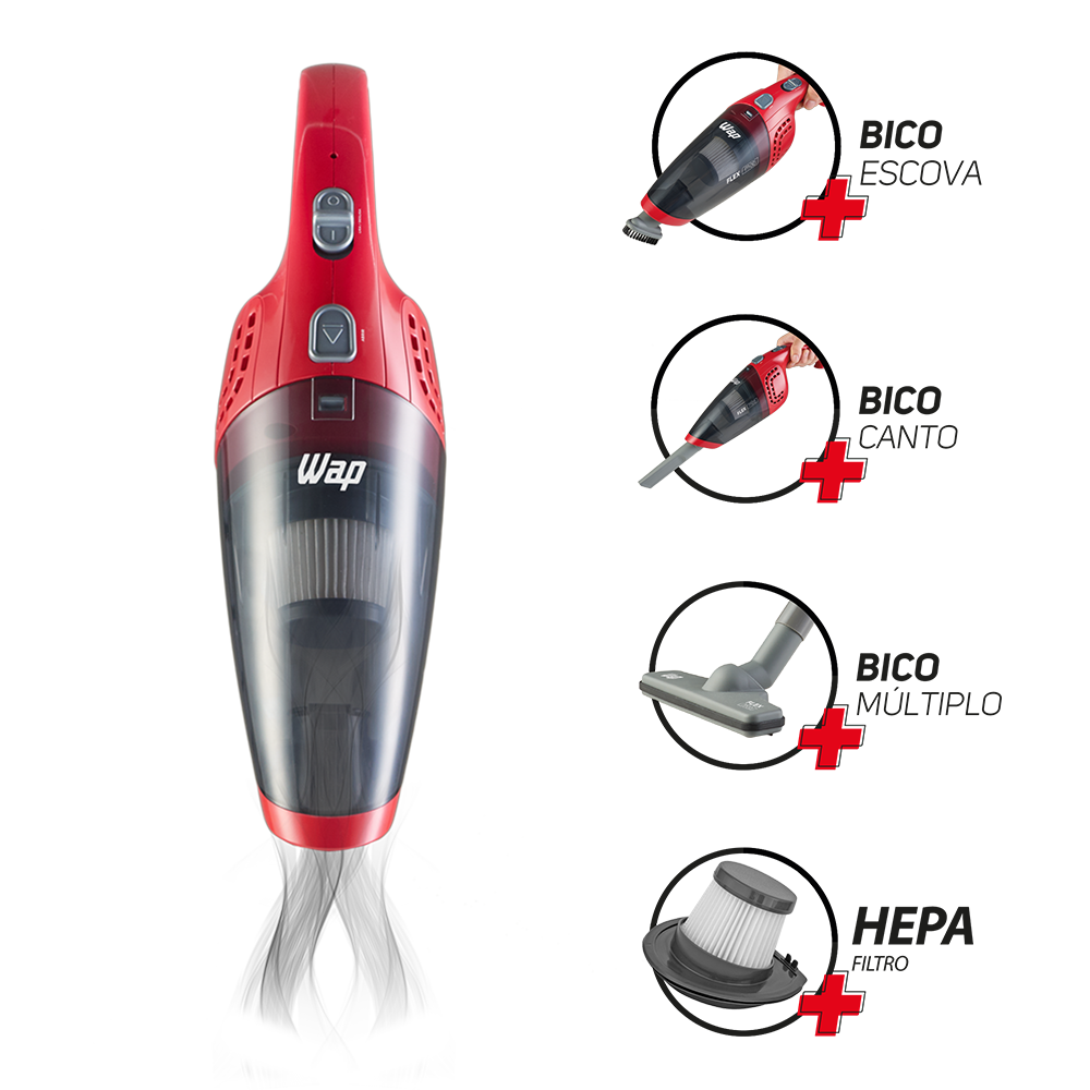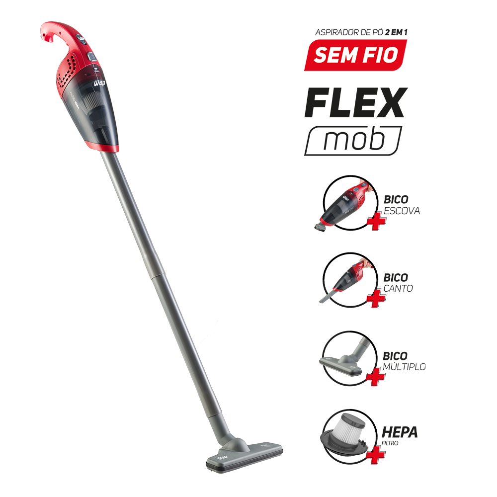 Limpar a casa e o carro todos os dias é muito mais rápido e fácil com o aspirador de pó sem fio WAP Flex MOB 2 em 1. Livre-se dos cabos e fios que te amarram e não se preocupe mais com tomadas e extensões na hora da faxina.