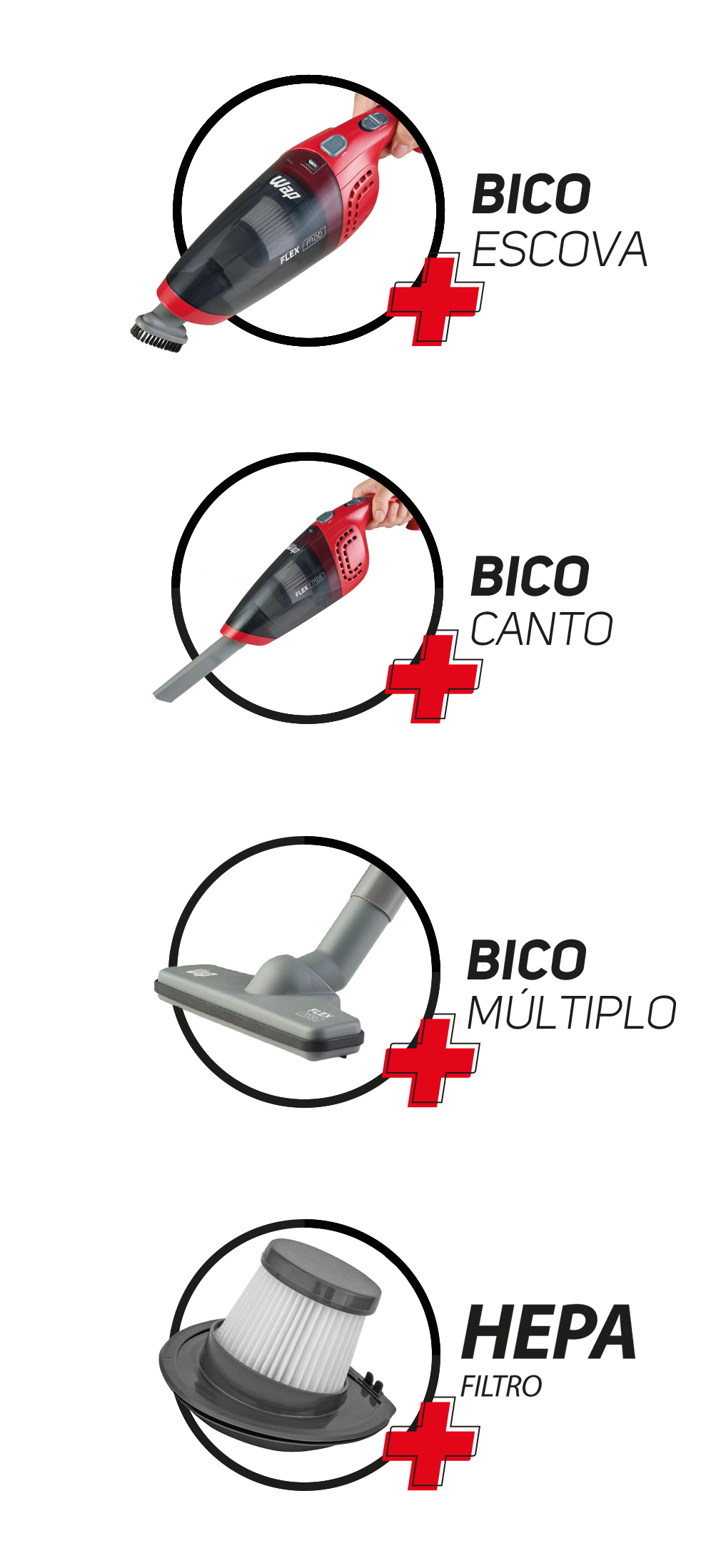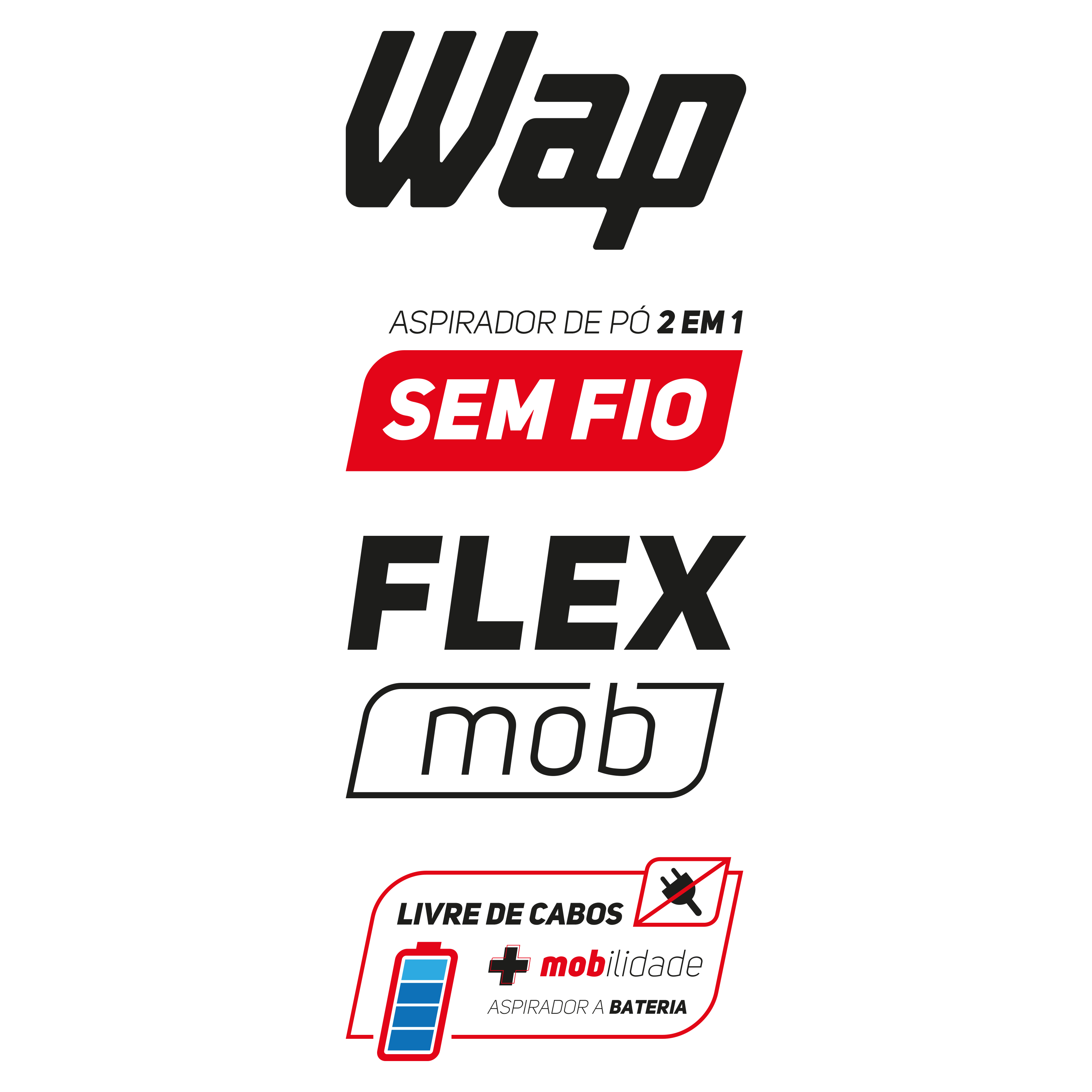| CONTEÚDO DA EMBALAGEM: | Aspirador sem fio WAP FLEX MOB + Acessórios + Manual de Instruções. |