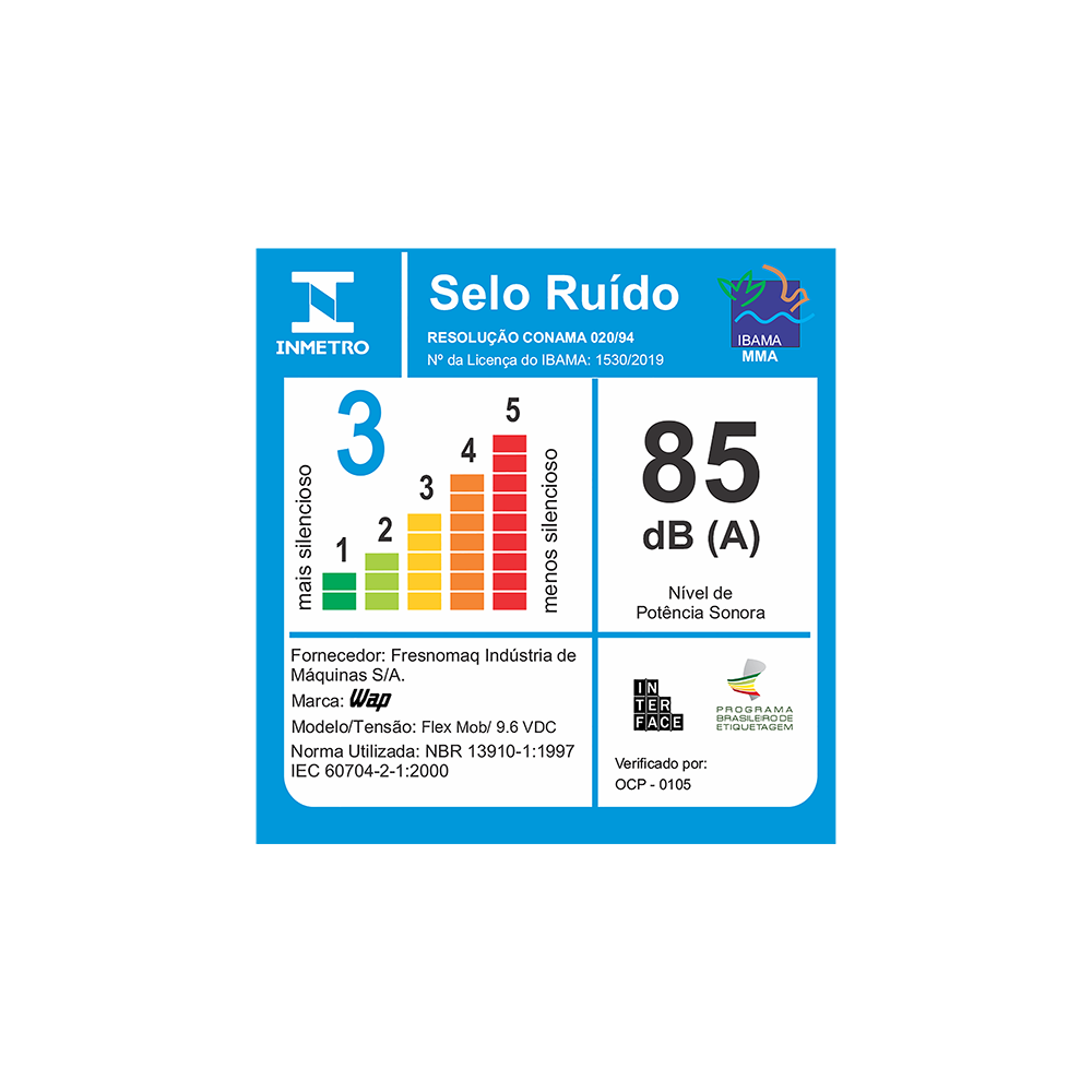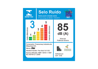 | NÍVEL DE RUÍDO: | 85 dB(A) |