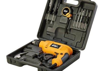 A Furadeira e Parafusadeira de Impacto WAP EFPI 700K10 é uma ferramenta completa, produtiva e muito confortável na hora de trabalhar. Além disso, ela vem com 11 acessórios incluindo punho auxiliar multidirecional, limitador de profundidade, trena de 3 metros, chave Philips, chave de Fenda, brocas para madeira (6 e 8 mm), brocas para alvenaria (5, 6 e 8 mm) e martelo. Ideal para um trabalho completo e organizado, tudo isso em uma maleta compacta e estruturada. Conta também com uma chave mandril, para facilitar o aperto das brocas. Está é uma solução da linha WAP Ferramentas, 100% rolamentada, que oferece robustez e qualidade para atender os usuários mais exigentes.