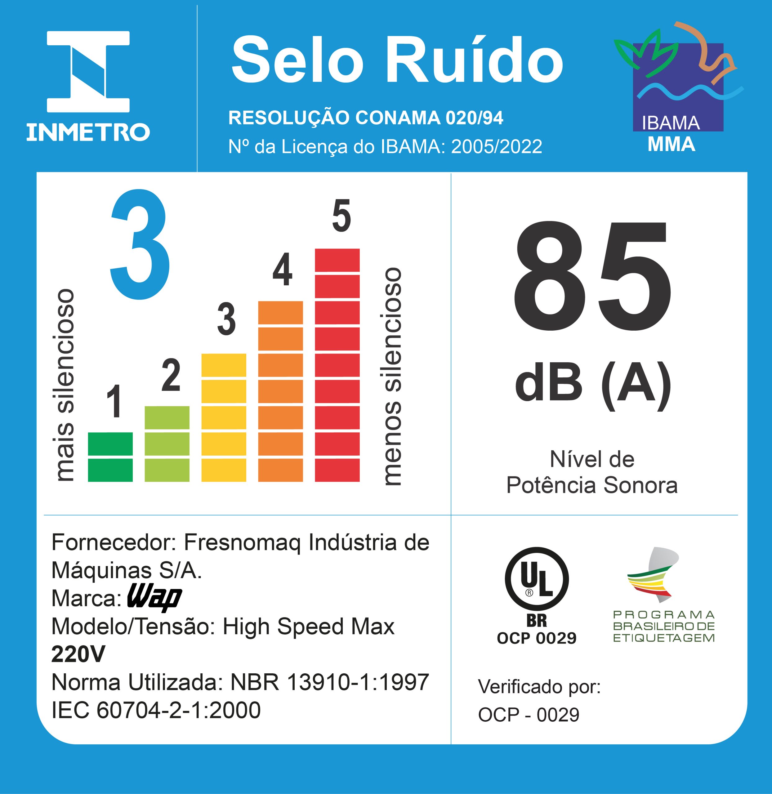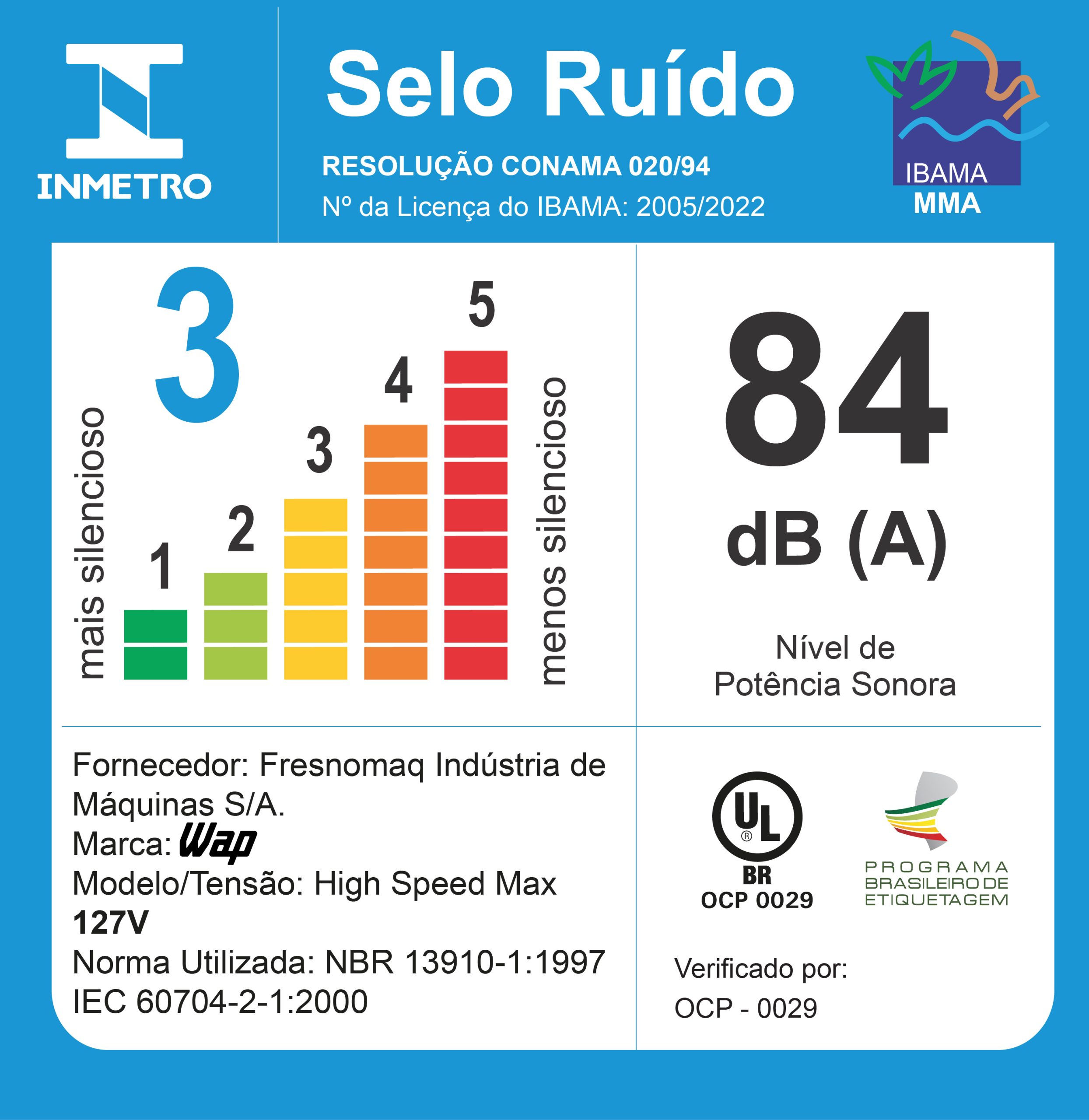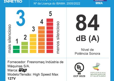 | NÍVEL DE RUÍDO: | 84 db(A) (127V) - 85 db(A) (220V) |