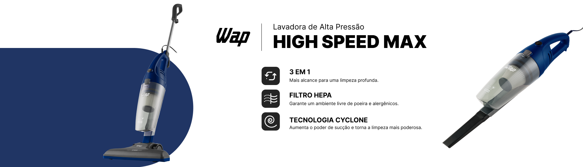 - Aspirador de Pó Portátil Wap High Speed Max 3 Em 1 Tecnologia Cyclone Compacto Com Filtro HEPA Lávavel 1350W 127V