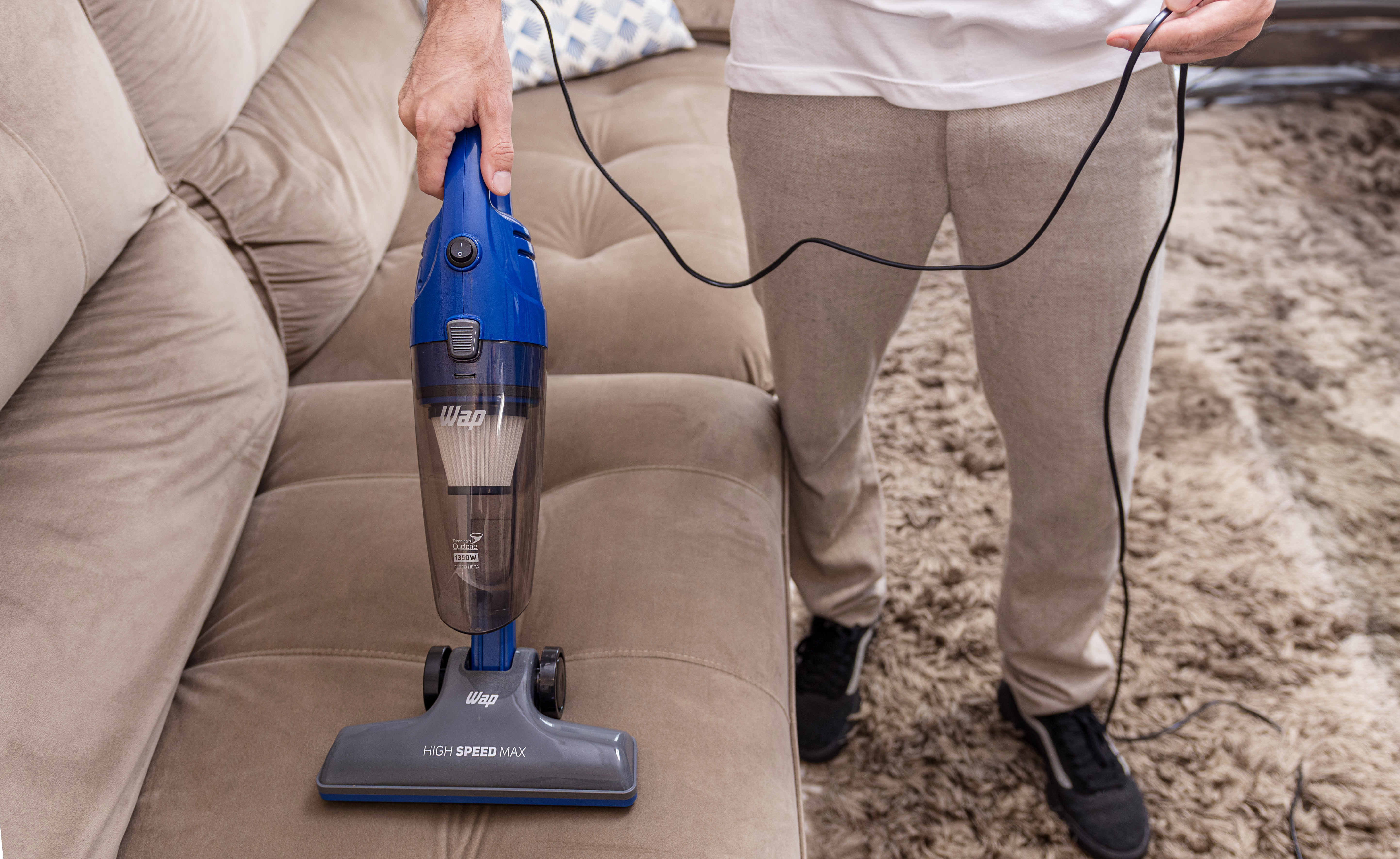 - Aspirador de Pó Vertical Wap High Speed Max Potente De Mão 3 Em 1 Tecnologia Cyclone Com Filtro HEPA Lávavel 1350W 220V