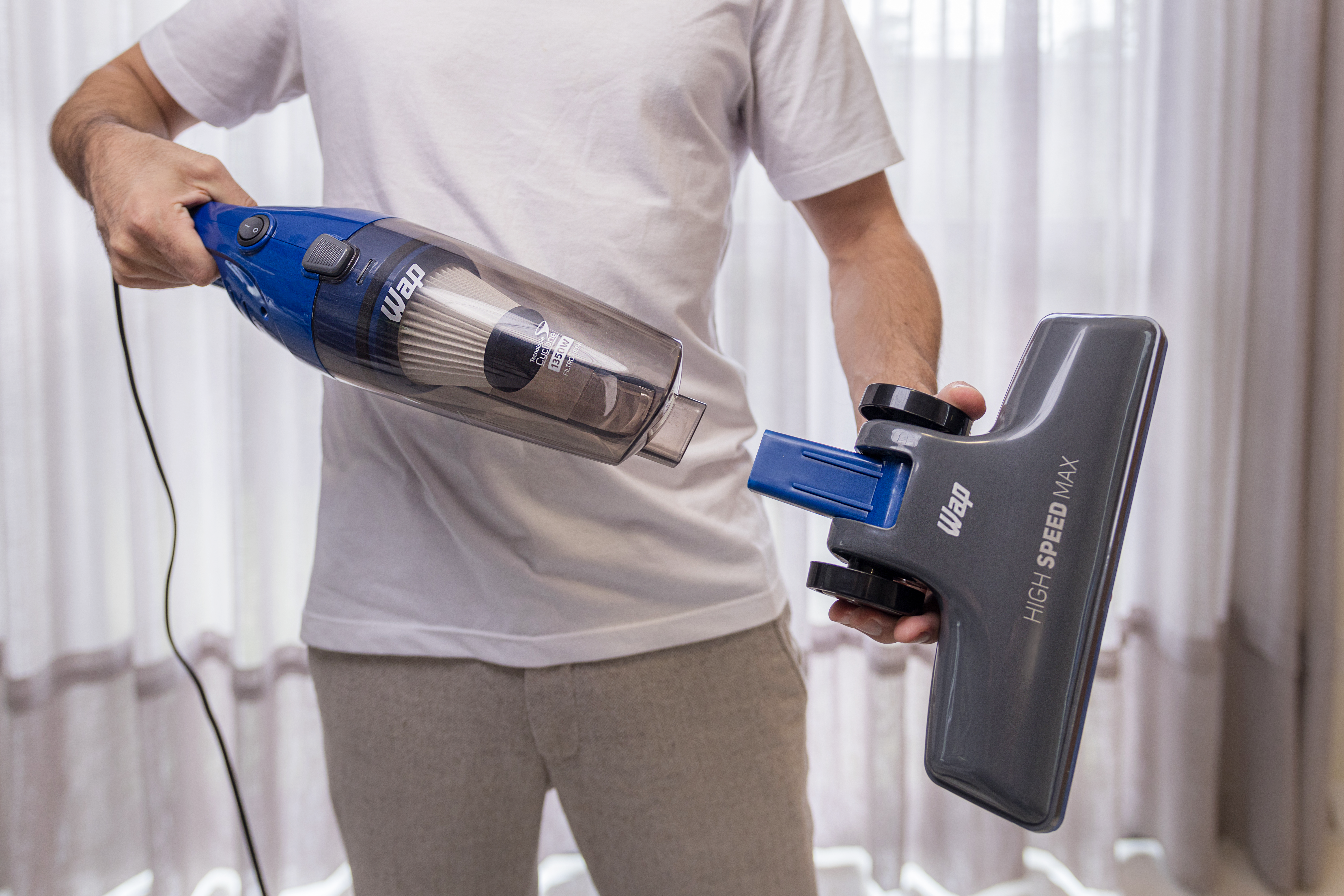 Manter a casa limpa fica fácil com o WAP High Speed MAX! Sendo ergonômico e prático de usar, você pode alternar entre o aspirador vertical e o portátil. Basta remover a haste extensora para ter mais liberdade durante as sessões de faxina, garantindo que sua casa fique limpa com rapidez, sem esforço.