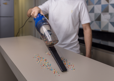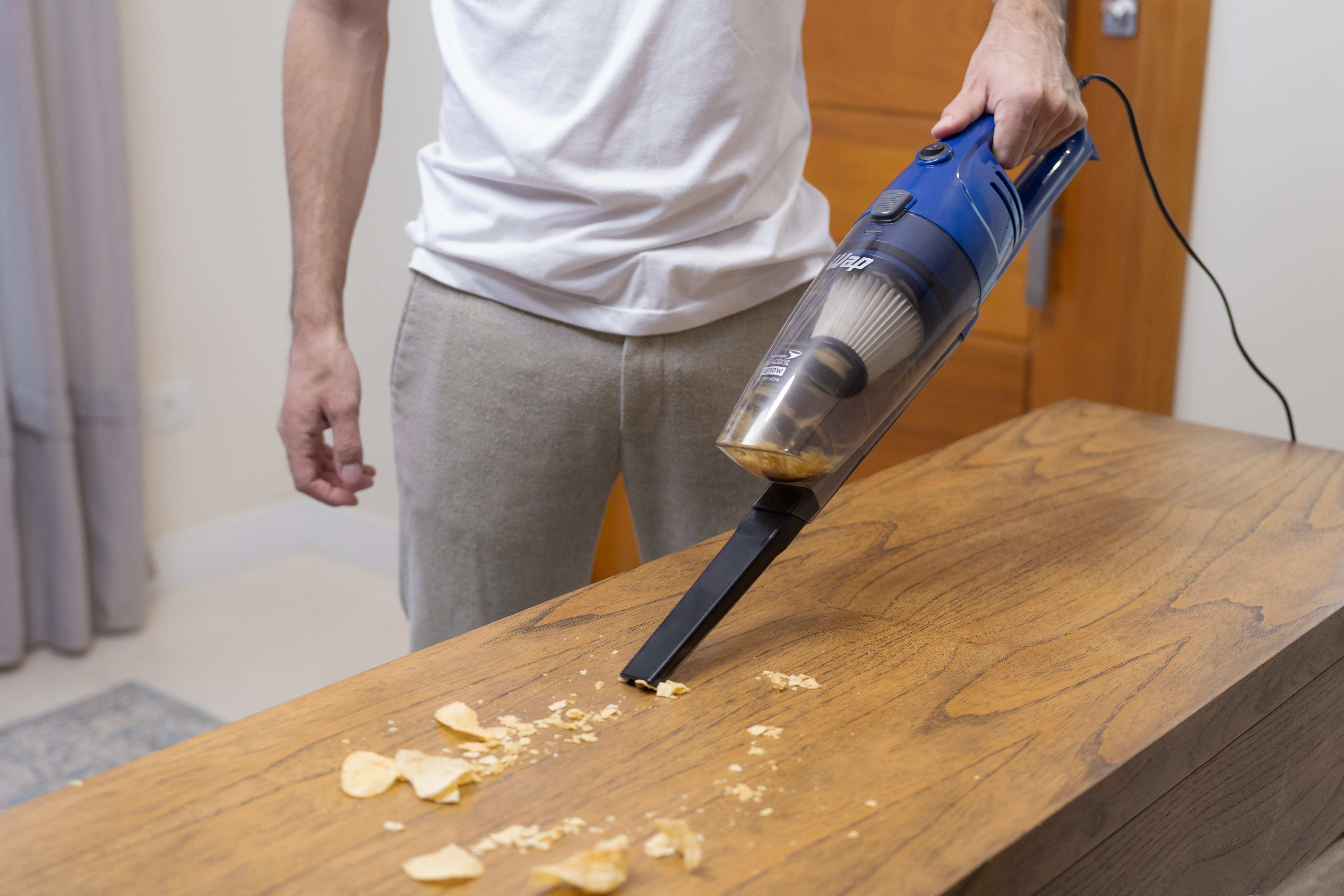 Pronto para ser um parceiro potente no seu dia a dia, o aspirador de pó possui um cabo elétrico de 4 metros, permitindo o alcance em baixo de camas, armários ou cantos de sofás de todos os cômodos da casa sem trocar de tomada. Além disso, por ser compacto e desmontável, é possível guardá-lo em diferentes locais.