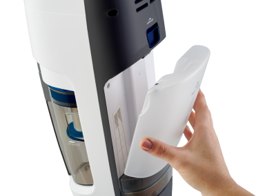 - Suporte deslizante: Exclusivo acessório que permite deslizar perfeitamente sobre tapetes e carpetes para uma limpeza mais eficiente e precisa.