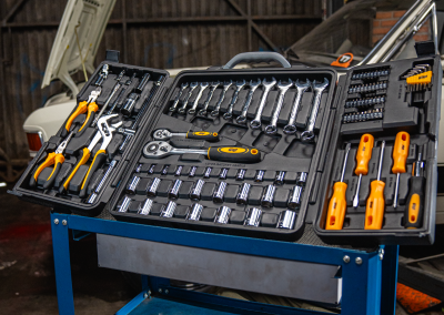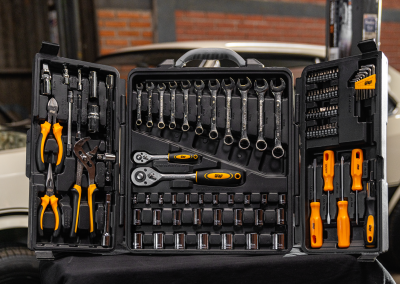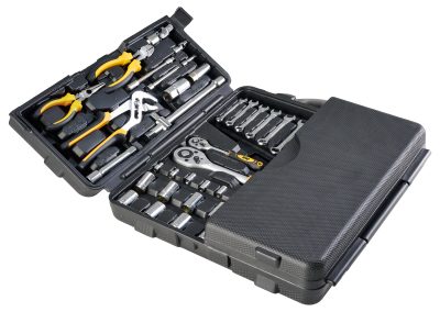 - Durável e resistente ao desgaste, as ferramentas do kit são feitas em aço cromo-vanádio.