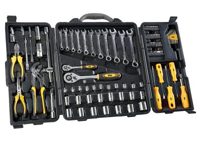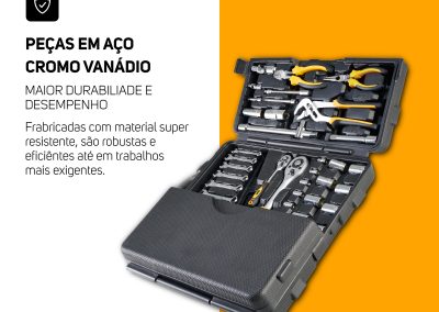 - O kit de ferramentas conta com 110 peças resistentes e funcionais, ideais para manutenções e reparos em geral.