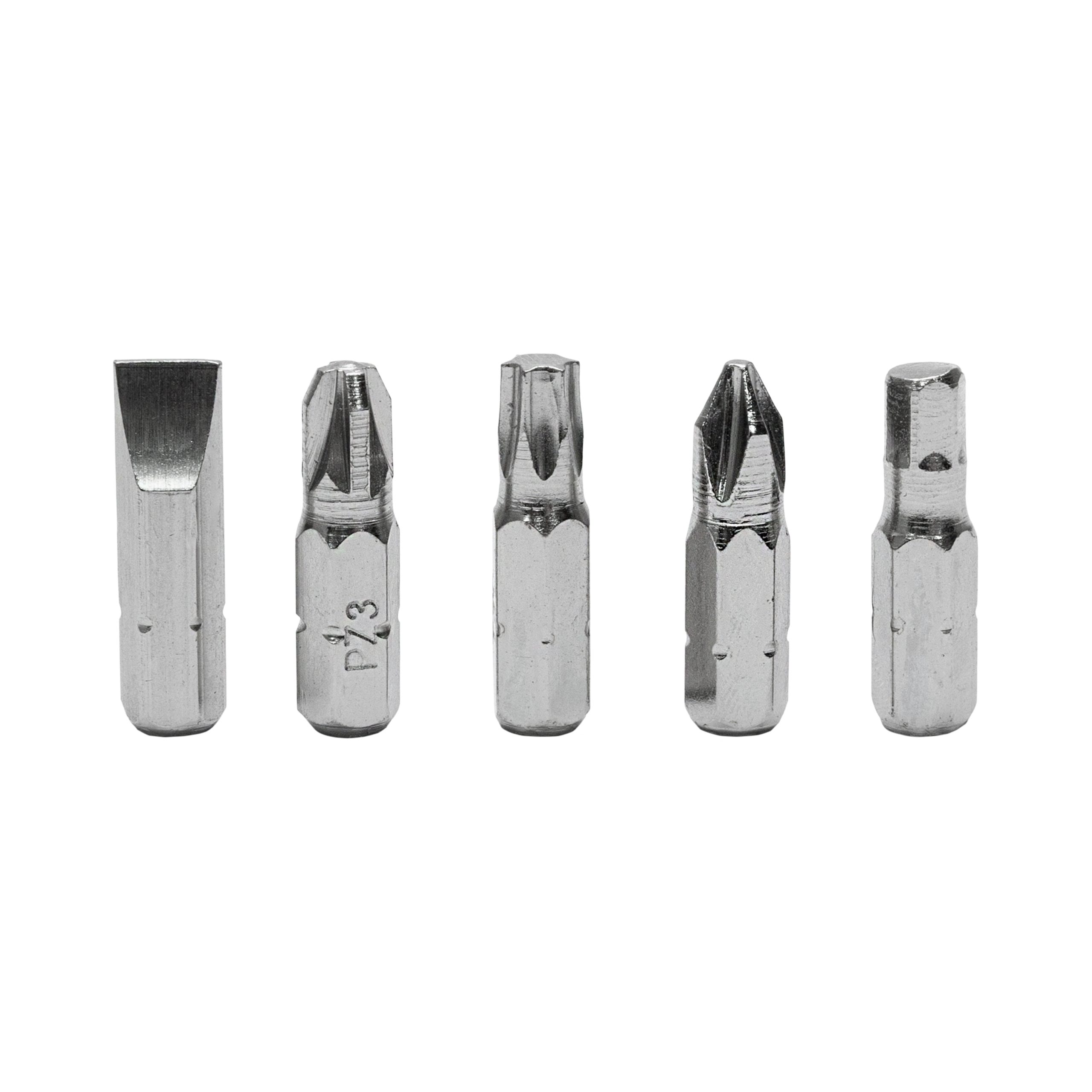 38 Bits soquetes 1/4" 25L: SL 3.5, 3.5, 4, 4, 5.5, 6.5, 8; S1, 2, 3; PH: 0,0,1,1,2,2,3,3; T10, 15, 20, 25, 27, 30,40; PZ: 1, 2, 3; 3-wing 1, 2, 3, 4 H2, 3, 4, 5, 6 e 7