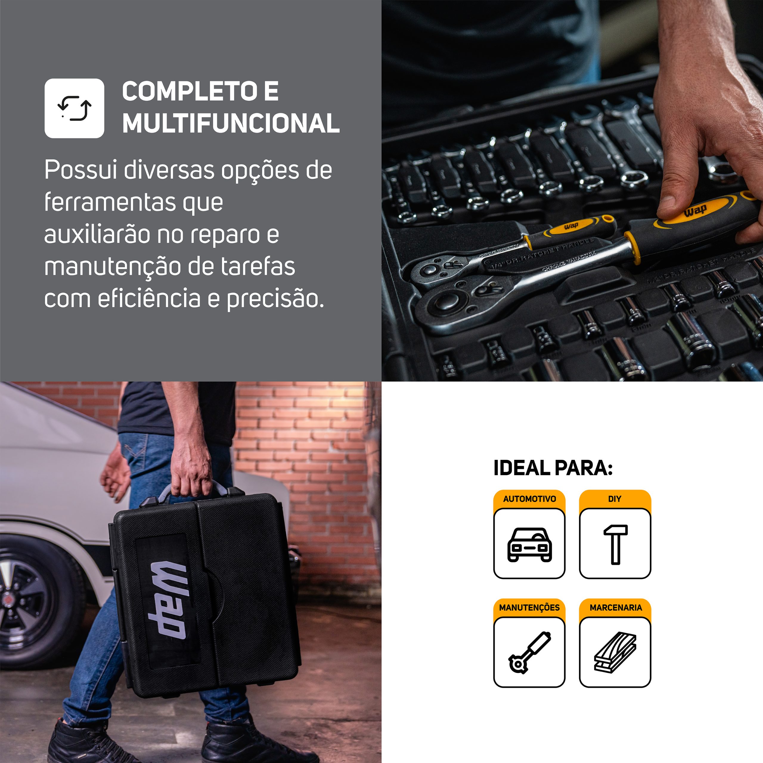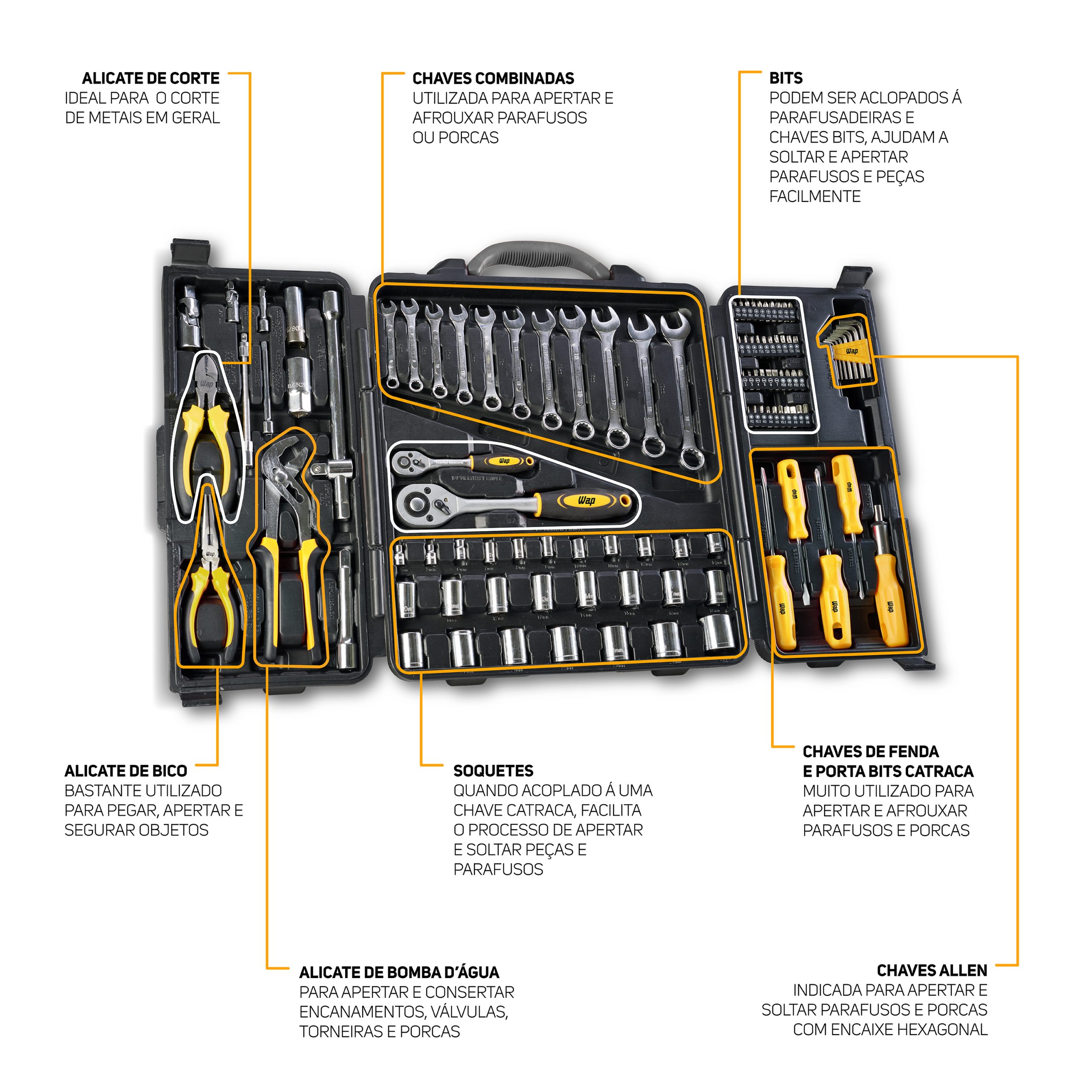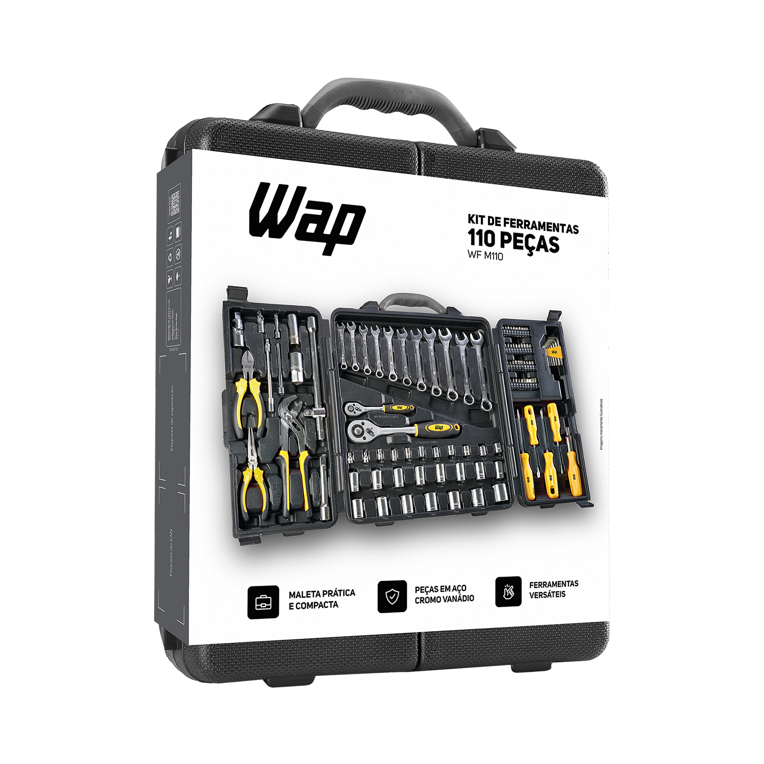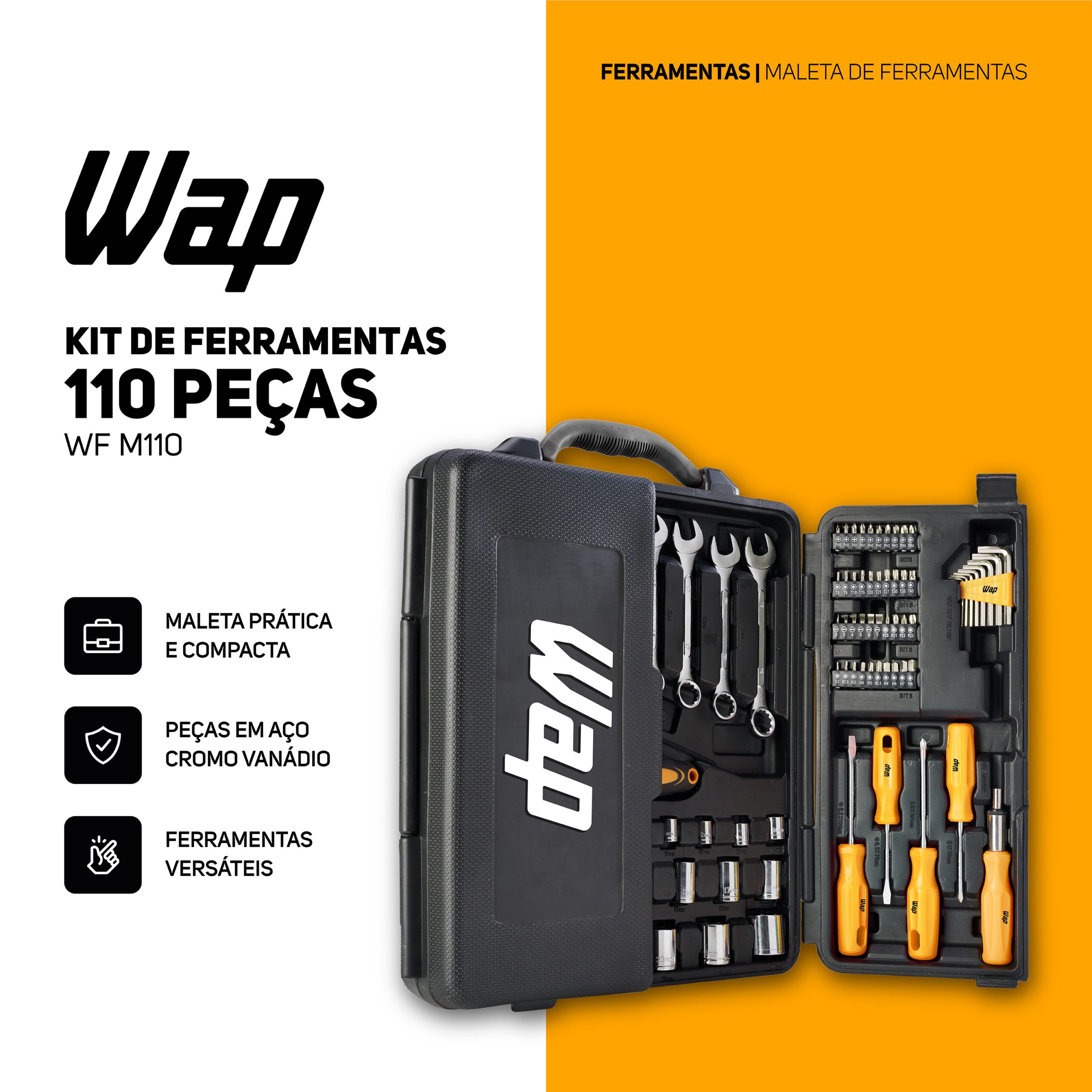 WAP Kit De Ferramentas WAP 110 Peças WF M110 Em Aço Cromo Vanádio Com Maleta Resistente Para Manutenção