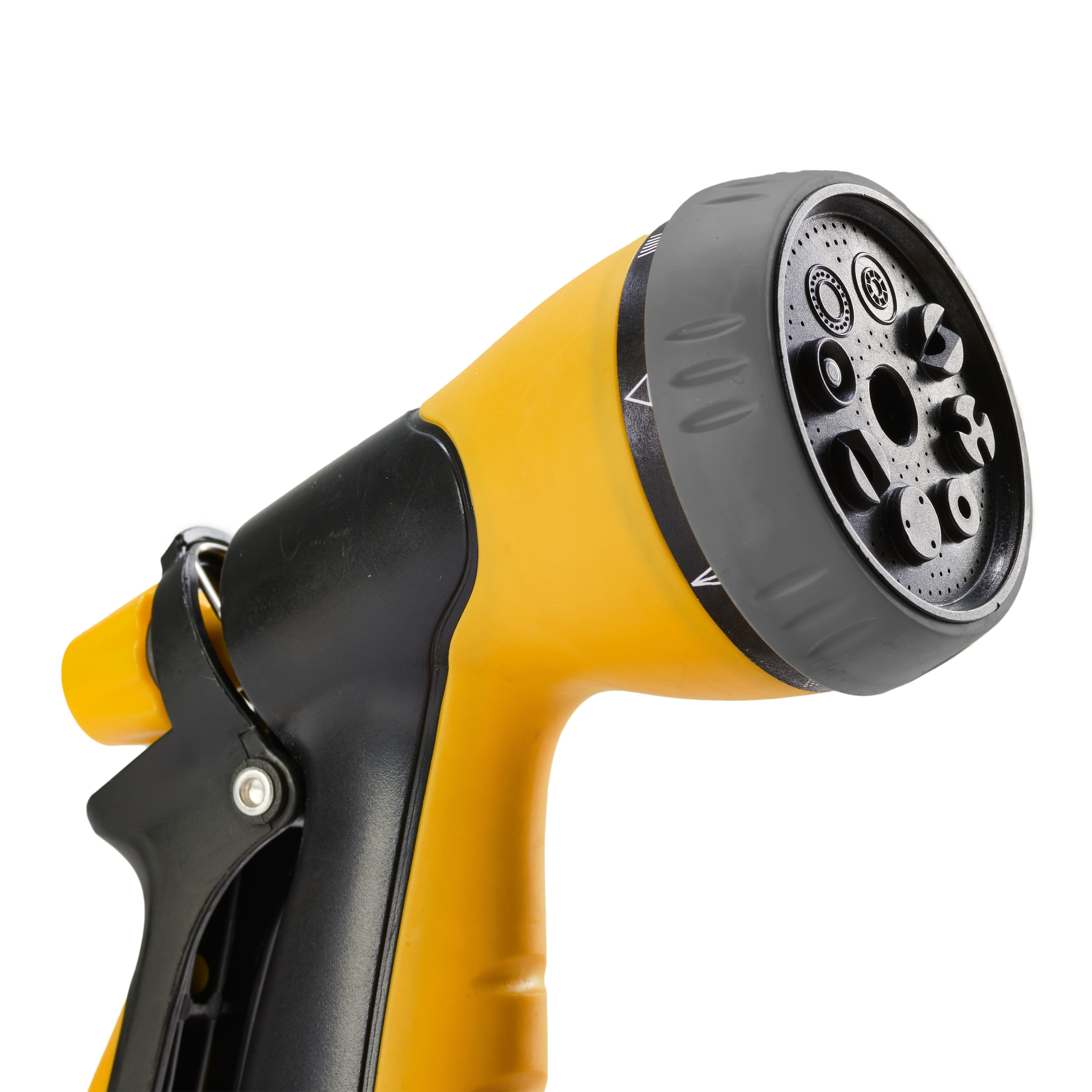 Com 8 posições de jato, o Esguicho Irrigação Múltiplo pode ser usado no jato concentrado, névoa, círculo, leque, plano, ducha, cônico e quadrangular.