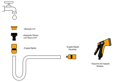 Ainda acompanha Adaptador Fêmea com rosca 3/4″ e componente extra de redução 1/2″, Engate Rápido e Engate Rápido Aquastop, sendo o kit ideal para ter mais praticidade. Conta com o sistema de engate rápido com sistema Aquastop, que bloqueia automaticamente a saída de água ao desconectar o acessório, sem risco de vazamento de água.