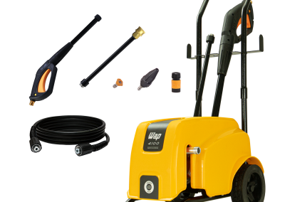 A lavadora de alta pressão WAP 4100 Turbo é a melhor opção para limpar sujeiras pesadas e profundas de grandes áreas com rapidez e agilidade. Com motor de indução, vazão máxima de até 500 L/h, lança com bico turbo, potência de até 2200W e pressão máxima de até 2000 PSI, é o equipamento de uso frequente perfeito para a remoção de níveis incrustados de sujeira nos mais diversos tipos de pisos e superfícies. É uma máquina compacta, durável, robusta e super prática para transportar. Ela cabe, inclusive, na caixa de transporte de motocicletas. Possui um exclusivo porta-acessórios que ajuda na organização dos componentes do produto e rodas emborrachadas, antiderrapantes, que não riscam o piso e facilitam o transporte.