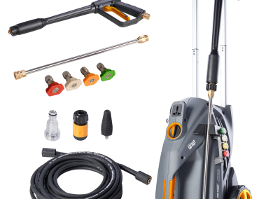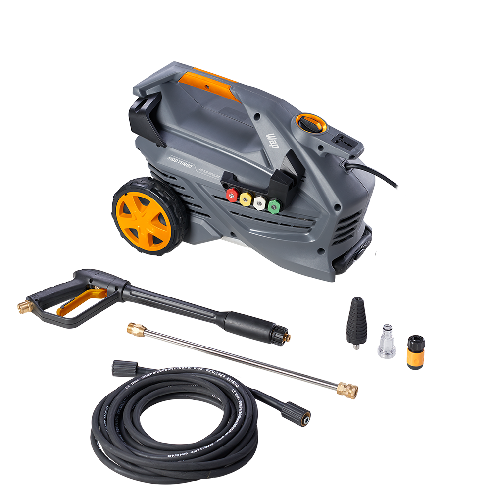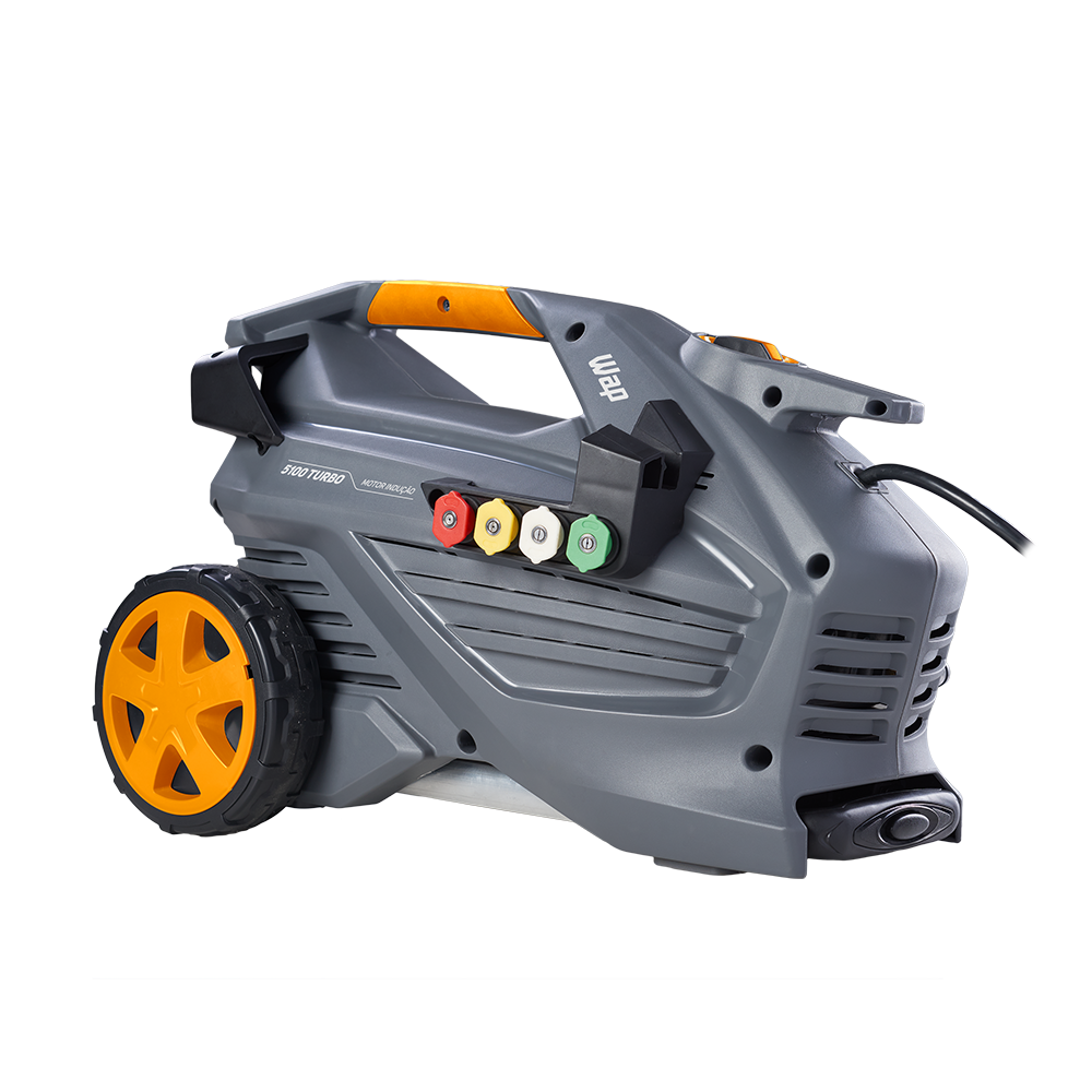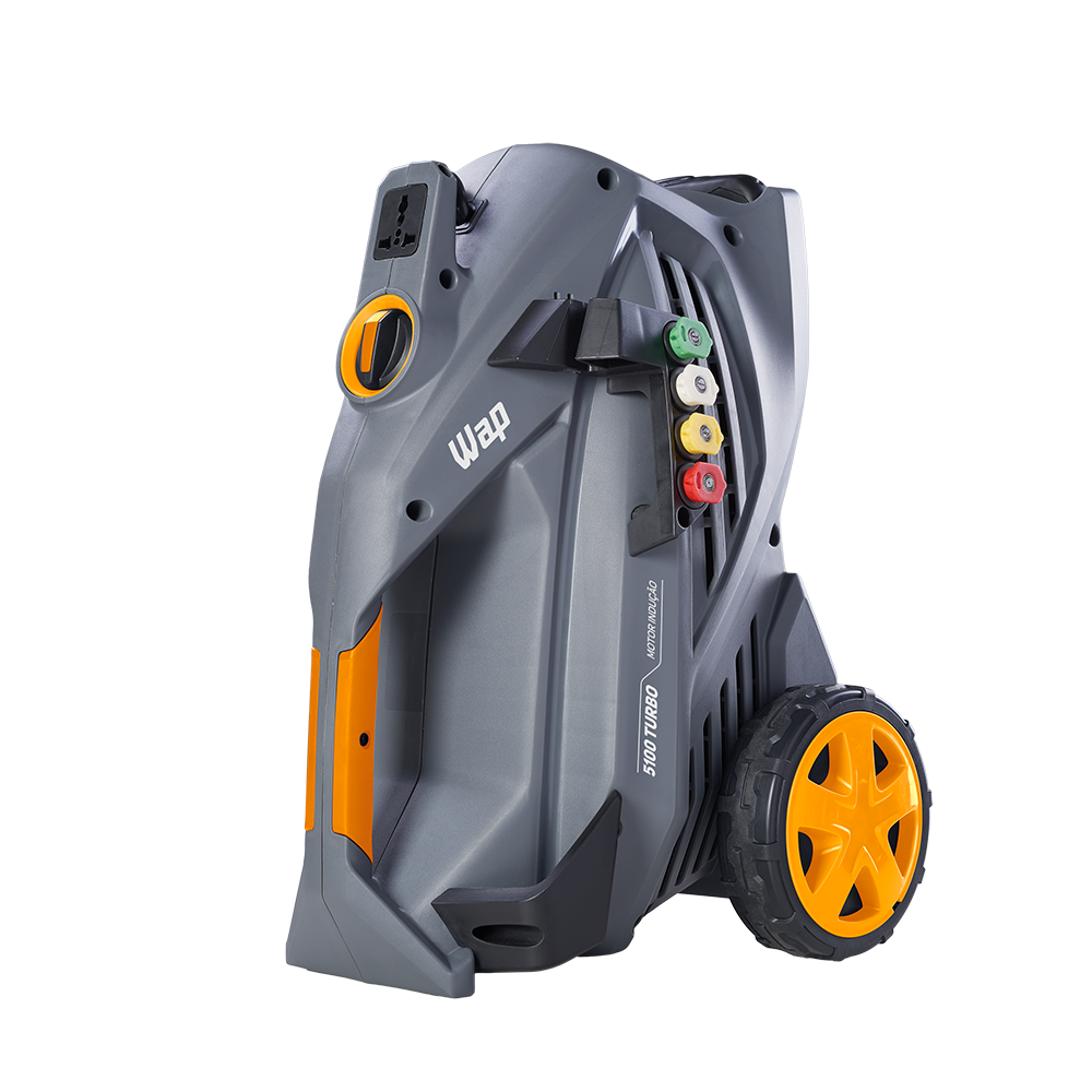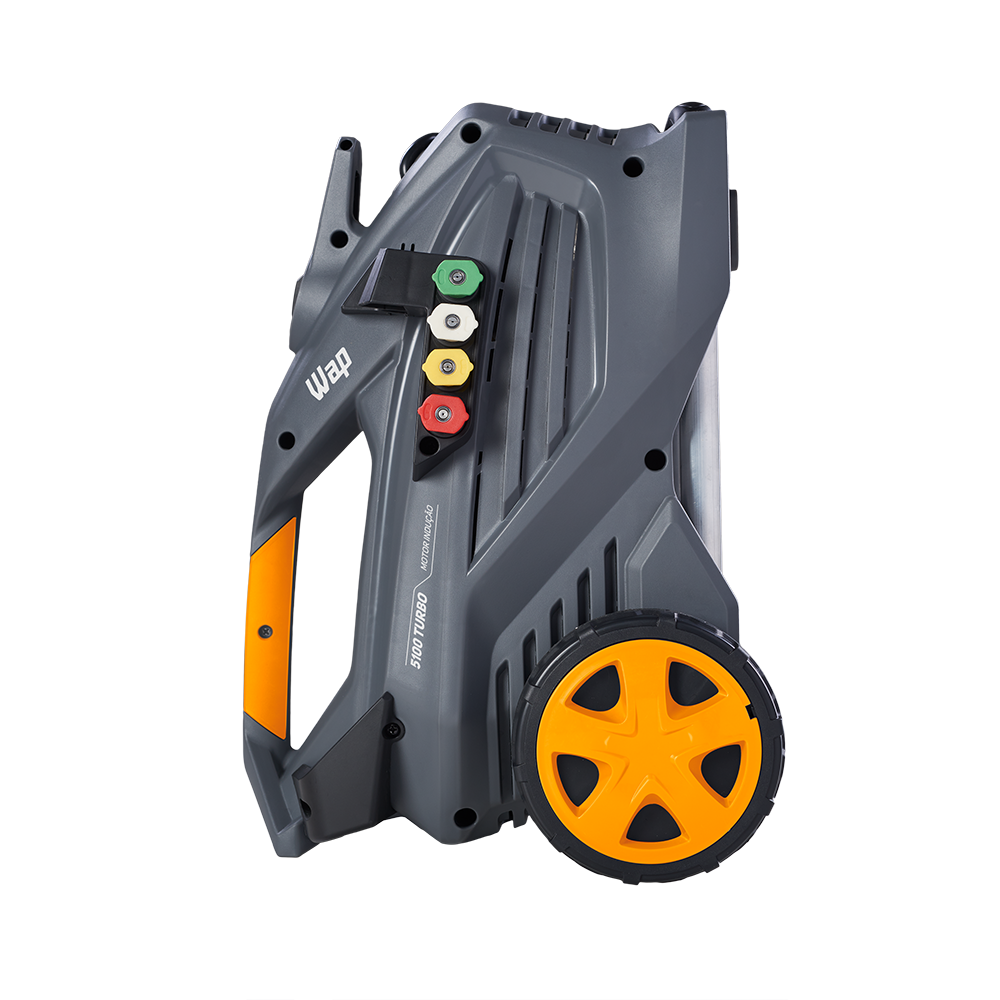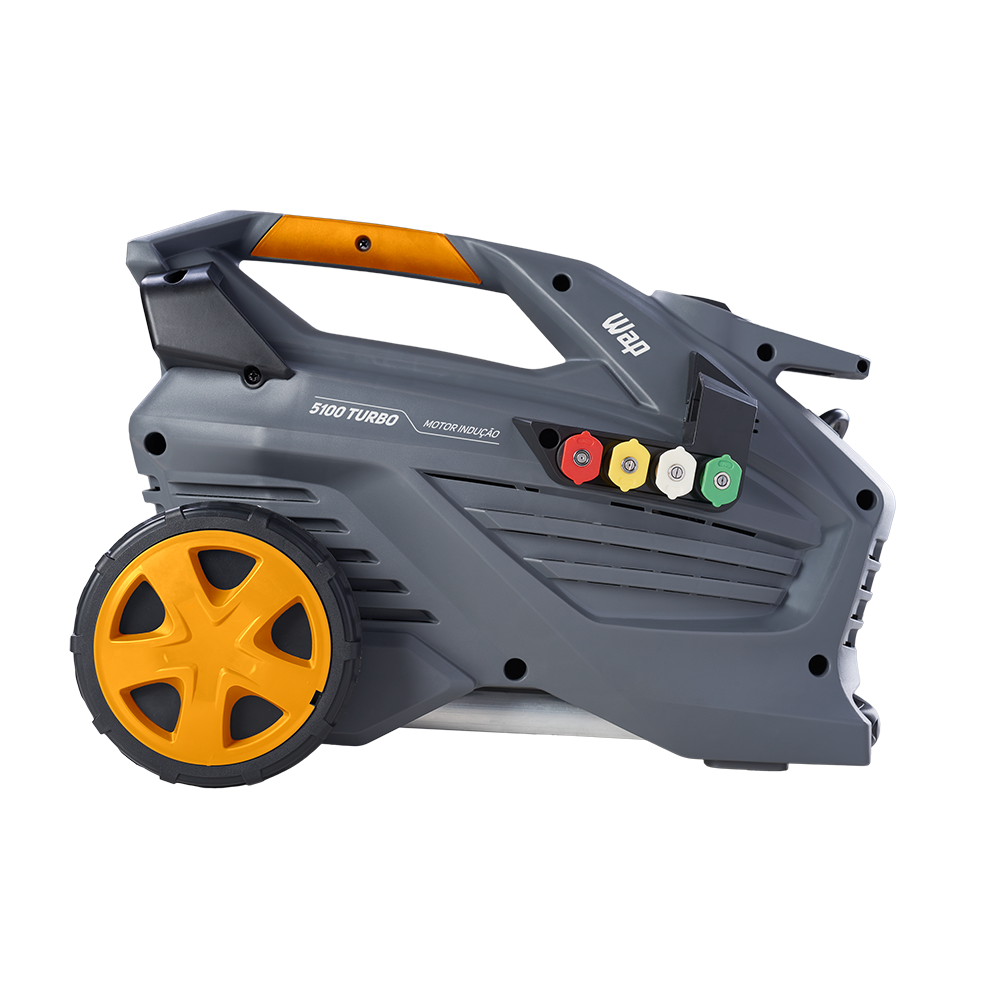 A lavadora de alta pressão WAP 5100 Turbo é a melhor opção para limpar sujeiras pesadas e profundas de grandes áreas com rapidez e agilidade. Com motor de indução, vazão máxima de até 550 L/h, bico turbo, potência de até 2500W e pressão máxima de até 2300 PSI, é o equipamento de uso frequente perfeito para a remoção de níveis incrustados de sujeira nos mais diversos tipos de pisos e superfícies. É uma máquina compacta, durável, robusta e super prática para transportar com alças de alumínio retrátil e emborrachada. A WAP 5100 Turbo cabe, inclusive, na caixa de transporte de motocicletas. Possui um exclusivo porta-acessórios que ajuda na organização dos componentes do produto e rodas que facilitam o transporte.