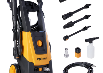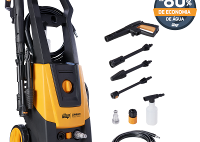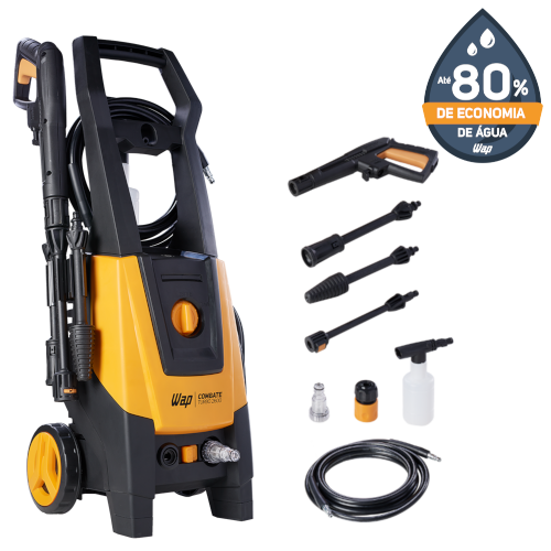 A lavadora de alta pressão WAP Combate Turbo 2600 é a melhor opção para limpar sujeiras pesadas e profundas com rapidez e agilidade, economizando tempo e até 80% de água se comparada à mangueira comum. Com motor de indução, potência de 1700W e pressão máxima de 2100 PSI é o equipamento perfeito para a remoção de níveis incrustados de sujeira nos mais diversos tipos de pisos e superfícies.