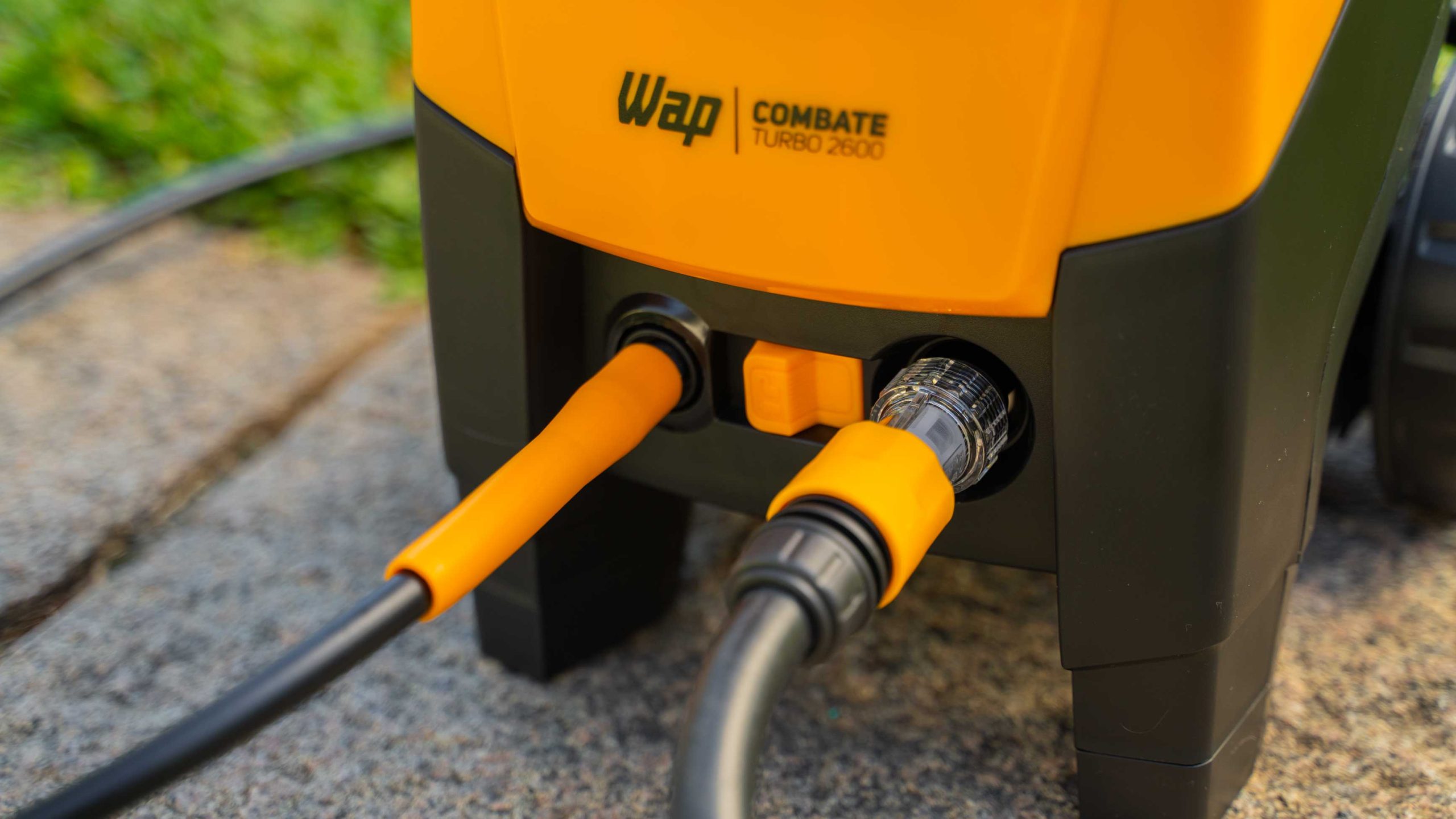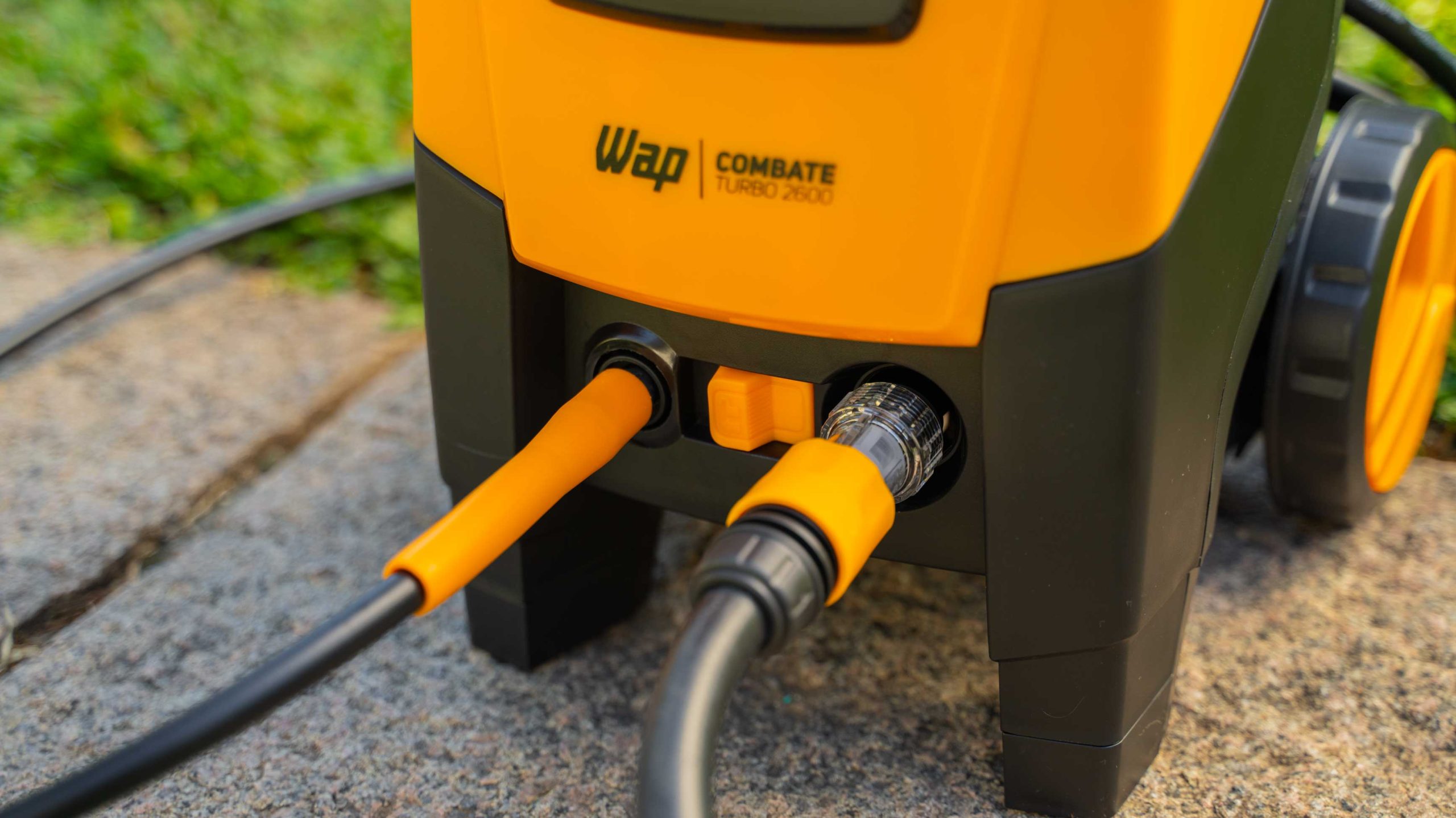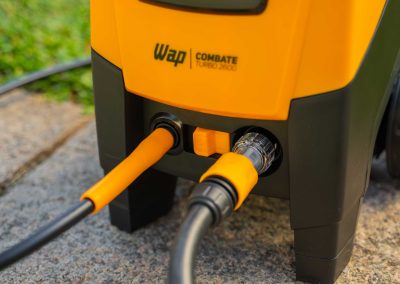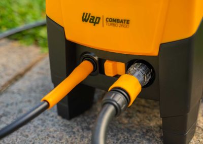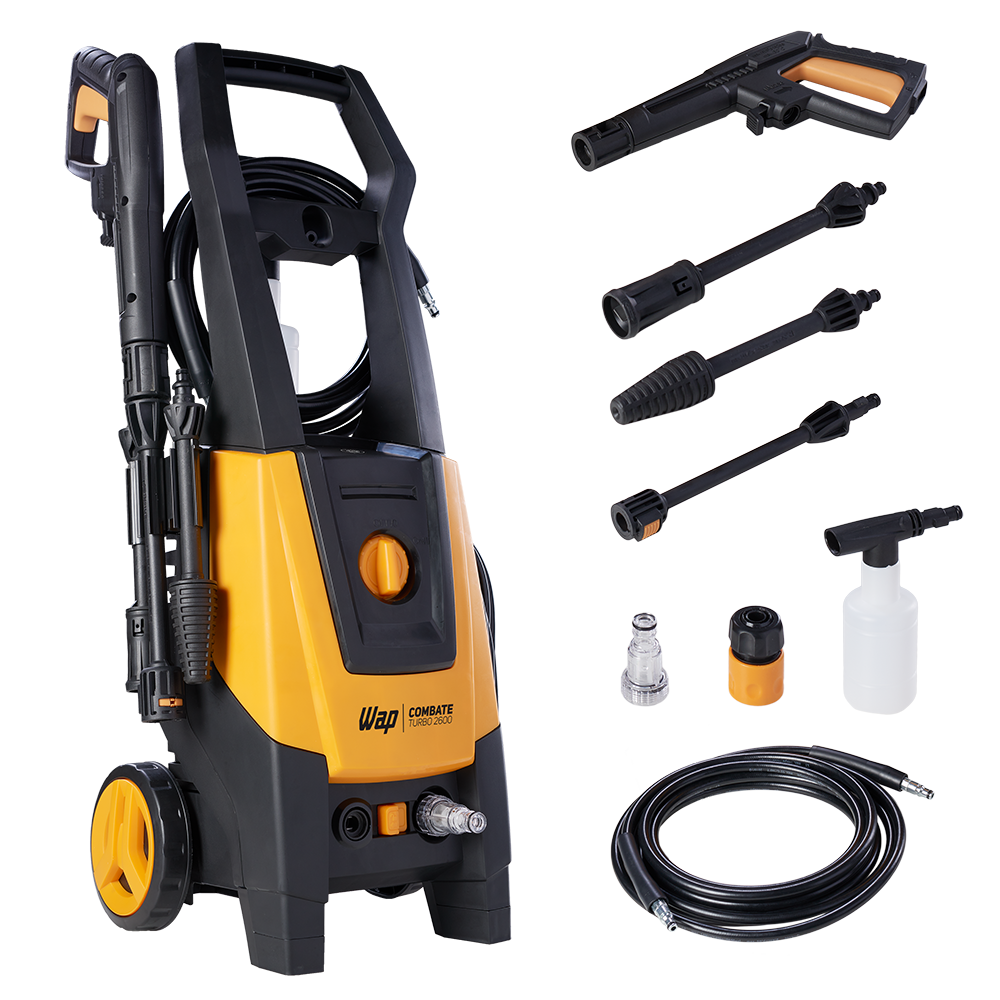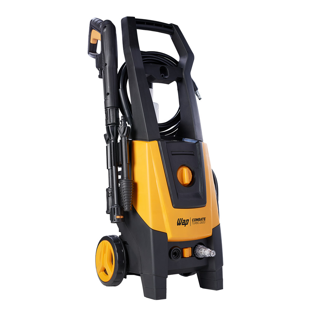 Equipada com alça e rodas que facilitam o transporte, a WAP Combate Turbo 2600 conta com cabo elétrico de 5 metros, mangueira de alta pressão de 5 metros, trava de segurança da pistola, bico regulável (leque ou concentrado), aplicador de detergente e o sistema stop total, que corta o fluxo de água e a energia do motor ao soltar o gatilho, poupando energia e aumentando a vida útil do motor.