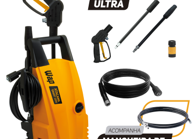 Para manter seus acessórios ainda mais organizados, a WAP Atacama Smart ULTRA 2200 conta com um prático porta-acessórios que permite acomodar a pistola, mangueira, lança e baioneta em locais adequados, o que reduz o risco de danos e facilita o manuseio do produto. Compacta para guardar e fácil de transportar, essa lavadora de alta pressão vem equipada com alça, mangueira de alta pressão de 3 metros, trava de segurança da pistola e o sistema stop total, que corta o fluxo de água e a energia do motor ao soltar o gatilho, o que poupa energia e aumenta a vida útil do motor. Além disso, a versão WAP ULTRA vem equipada com uma incrível Mangueira Desentupidora de 2 metros.