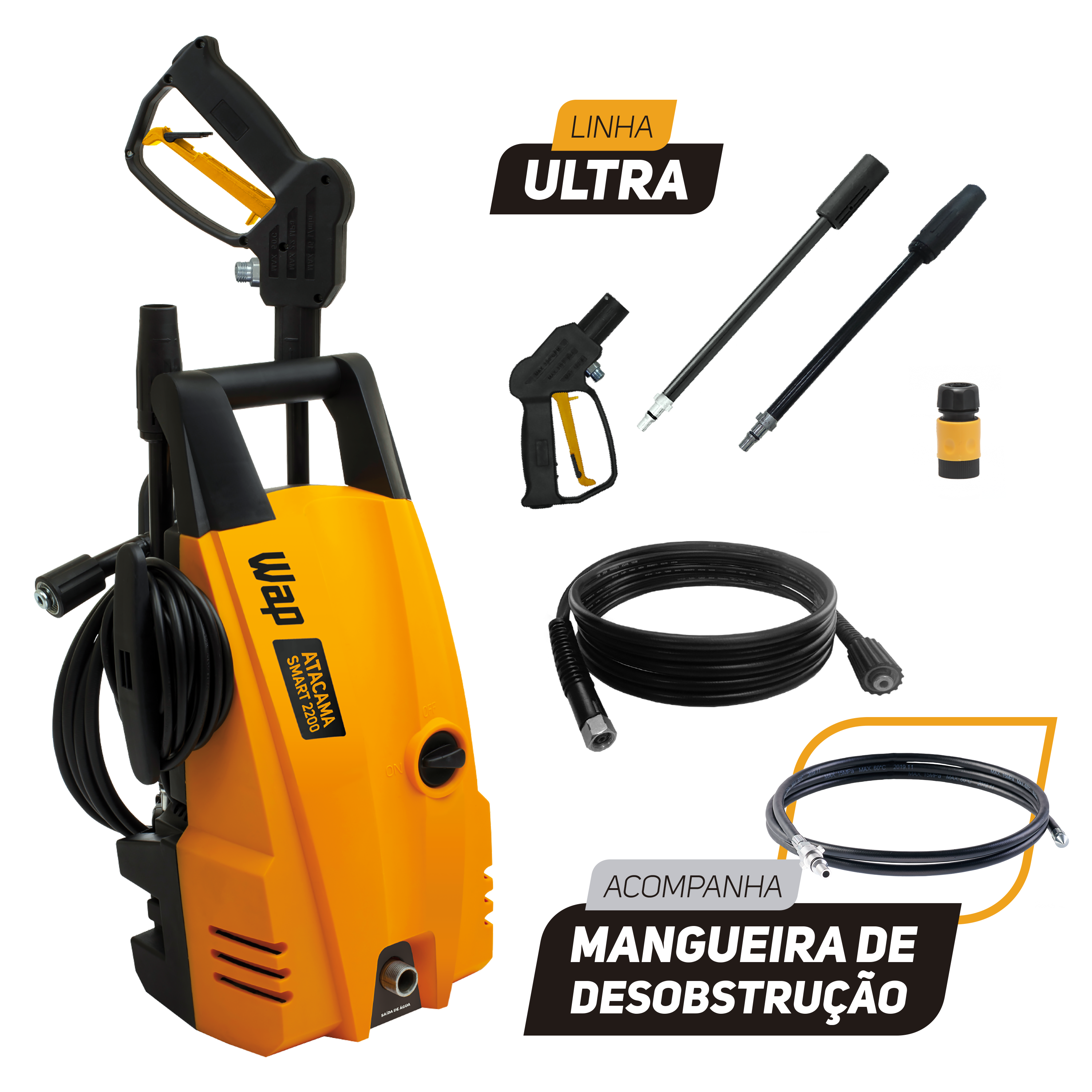 – 2 em 1, o Dobro de Vantagens! Desobstruidora e Lavadora de Alta Pressão WAP ATACAMA SMART ULTRA com Mangueira de Desobstrução;