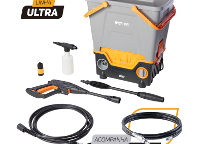 Em um design moderno e compacto, a Desobstruidora e Lavadora de Alta Pressão WAP Eco Smart ULTRA 2200 possibilita uma alternativa de limpeza sustentável. Equipada com alça que facilita o transporte, a WAP Eco Smart ULTRA 2200 conta com cabo elétrico e mangueira de alta pressão de 5 metros, mangueira desentupidora de 2 metros, trava de segurança da pistola, bico regulável (concentrado ou leque), aplicador de detergente com conexão rápida e o sistema stop total, que corta o fluxo de água e a energia do motor ao soltar o gatilho, poupando energia e aumentando a vida útil do motor. A lavadora de alta pressão conta também com bomba axial com cabeçote de alumínio e pistões em aço inox que conferem mais durabilidade para o produto.