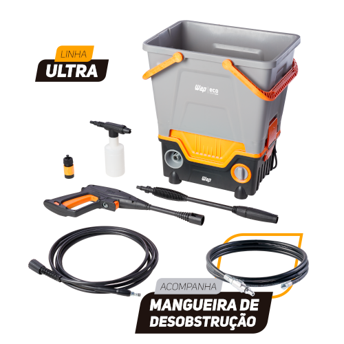 – A Desobstruidora de Alta Pressão WAP ECO SMART ULTRA 2200 é uma Máquina com Design Moderno que Reutiliza Água, além de desentupir canos, calhas e tubulações com facilidade utilizando jato de água.