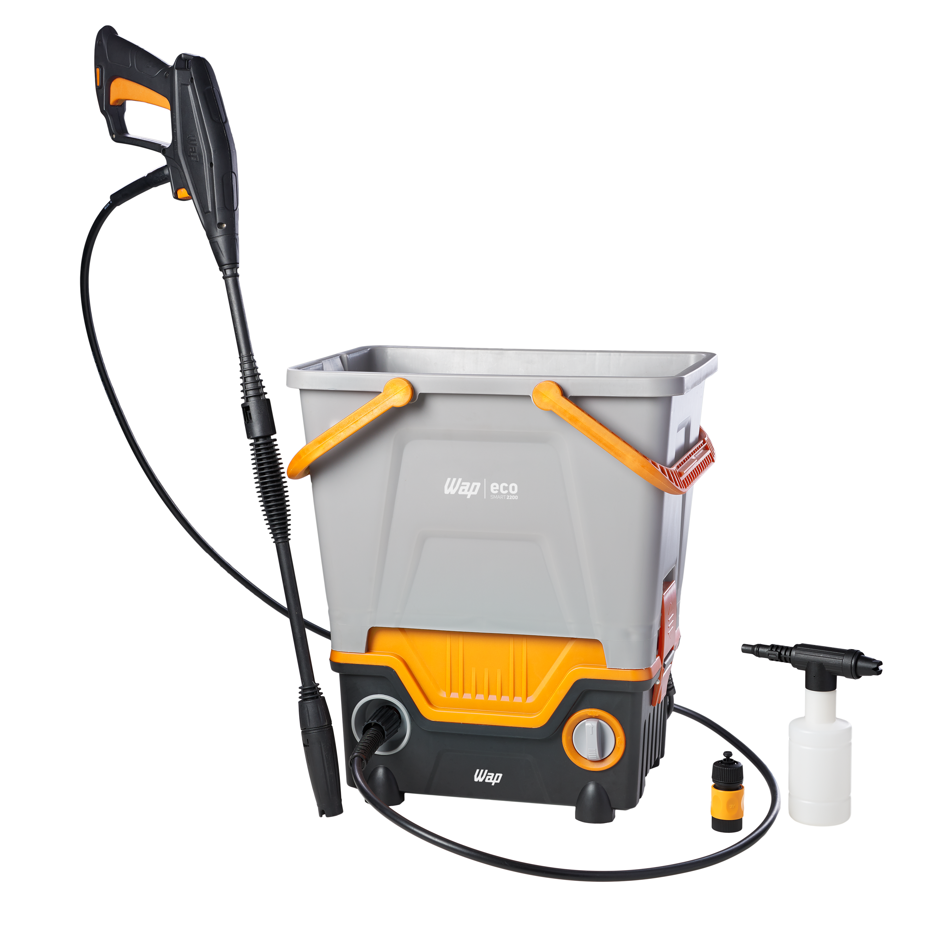 Com 1750 W de potência a WAP Eco Smart 2200 é uma lavadora robusta e perfeita para uma limpeza eficiente. Com pressão máxima de 1700 PSI é o equipamento perfeito para a remoção de níveis incrustados de sujeira em superfícies como paredes, motos, carros, calçadas, bicicletas, jardins e muito mais.