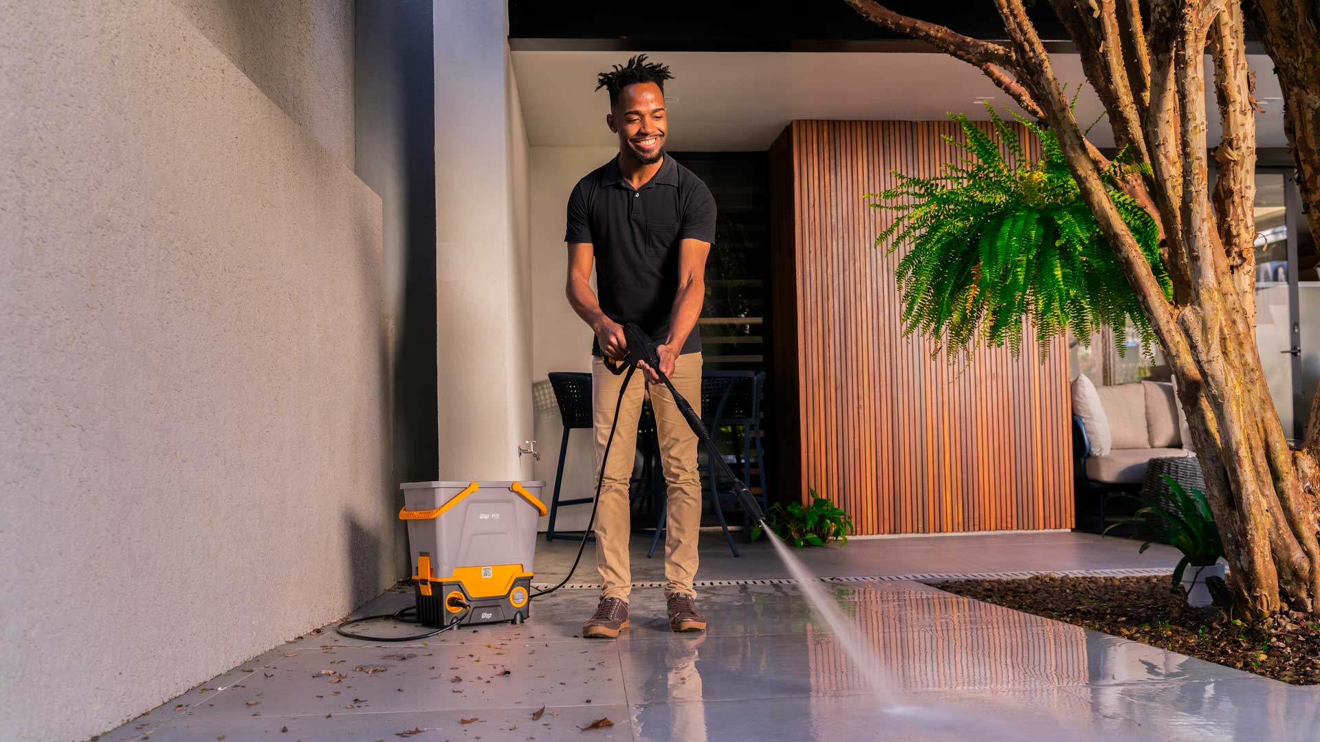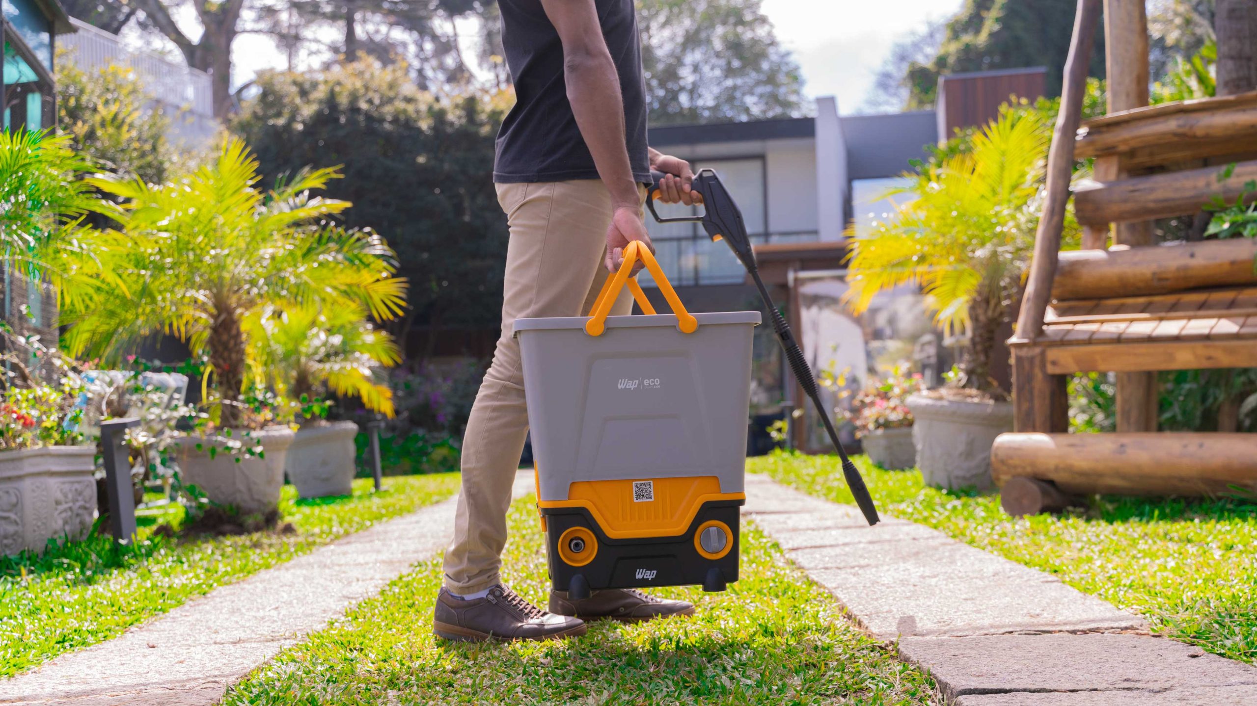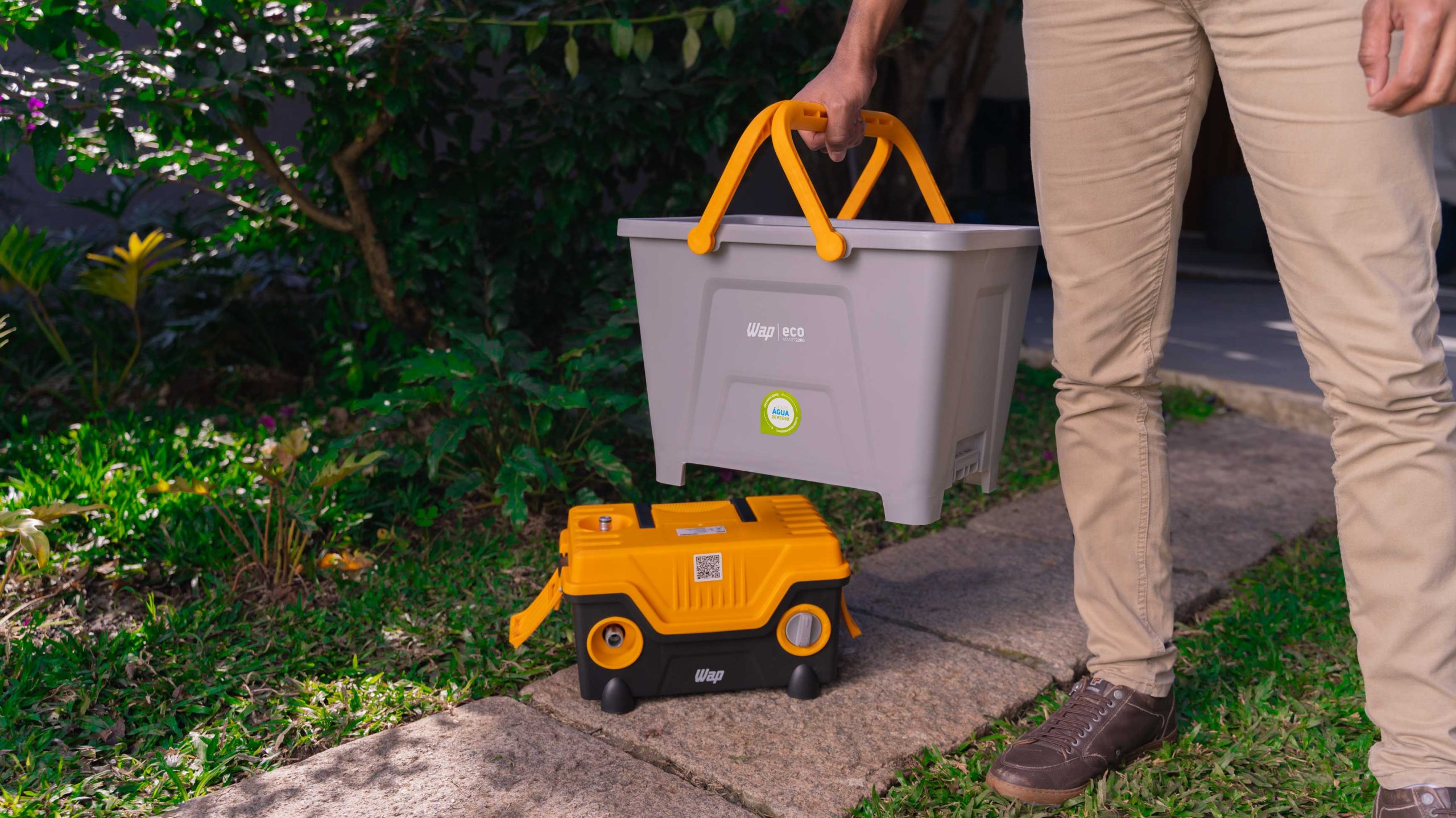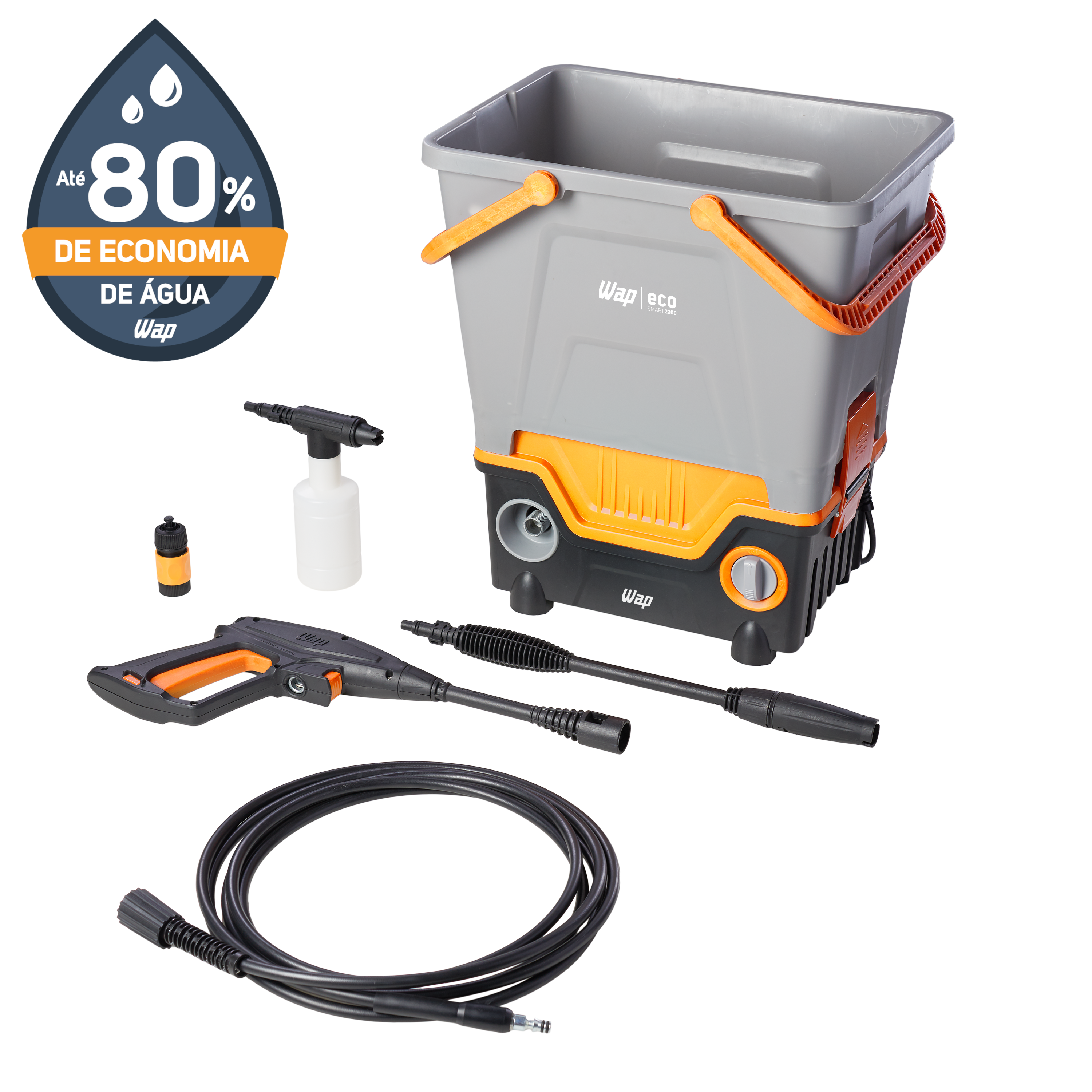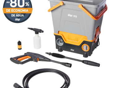 Conheça a solução mais eficiente, econômica e sustentável para sua limpeza. A WAP Eco Smart 2200 é a lavadora de alta pressão que REUTILIZA ÁGUA, enquanto você cuida da sua casa e do meio ambiente. Possui exclusivo reservatório de 23 litros que possibilita captar água da chuva, banho ou máquina de lavar para limpar todos os ambientes. Versátil, a WAP Eco Smart 2200 também pode ser utilizada de forma tradicional conectada a uma mangueira de jardim.