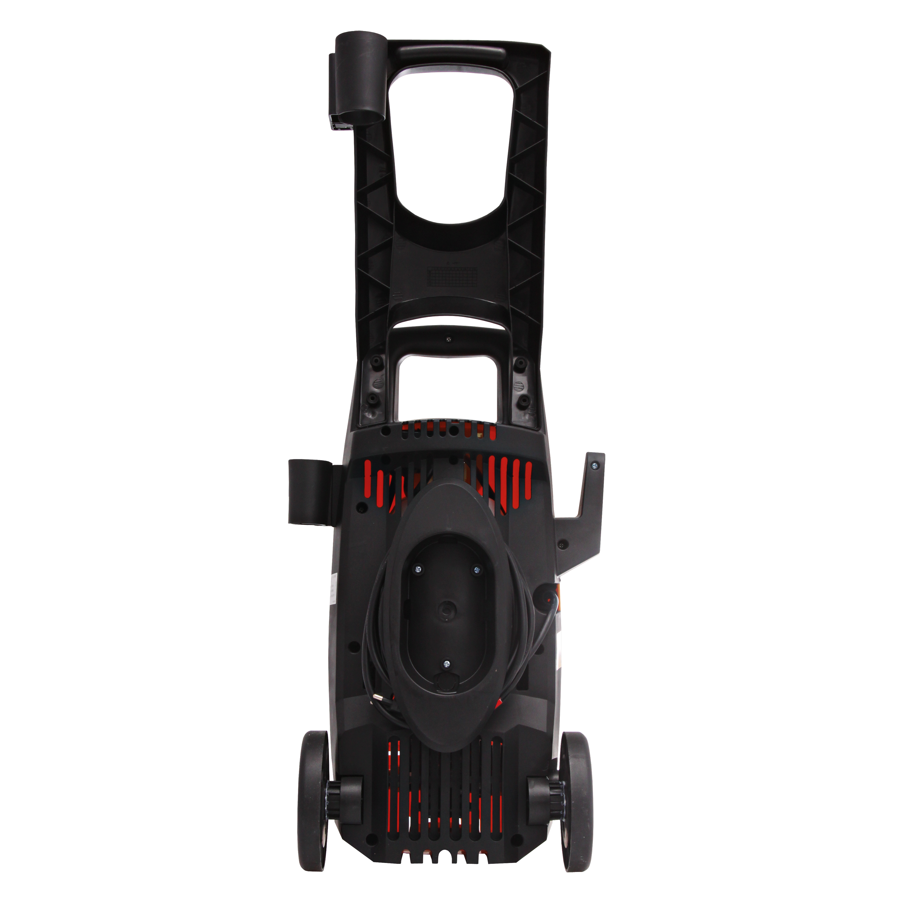 Bomba axial com cabeçote de alumínio. 3 pistões em aço inox. Cabo elétrico de 5 metros. Porta acessórios. 2 Rodas para transporte. Alça para transporte. Filtro de entrada de água. Suporte de pistola, mangueira e cabo elétrico. Sistema Stop Total. |