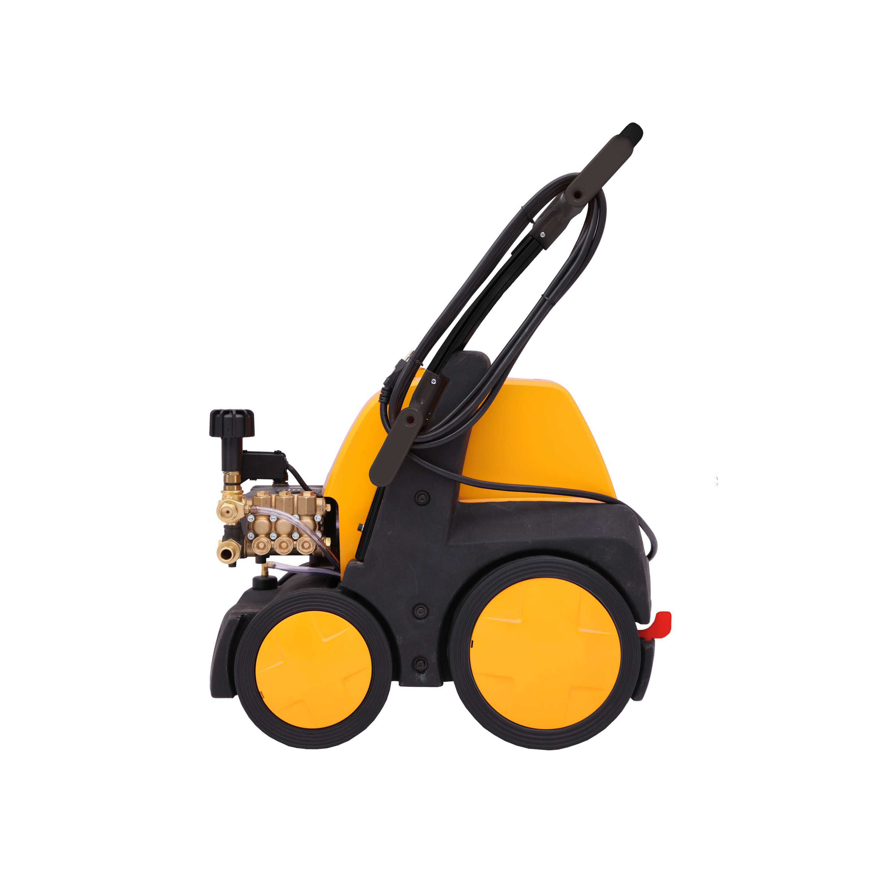 Bomba radial triplex cabeçote de latão. Pistões revestidos em cerâmica. Cabo elétrico de 5 metros. Filtro de entrada de água. 4 Rodas. Alça para transporte. Porta acessórios. Sistema Stop Total. Recipiente de detergente. |