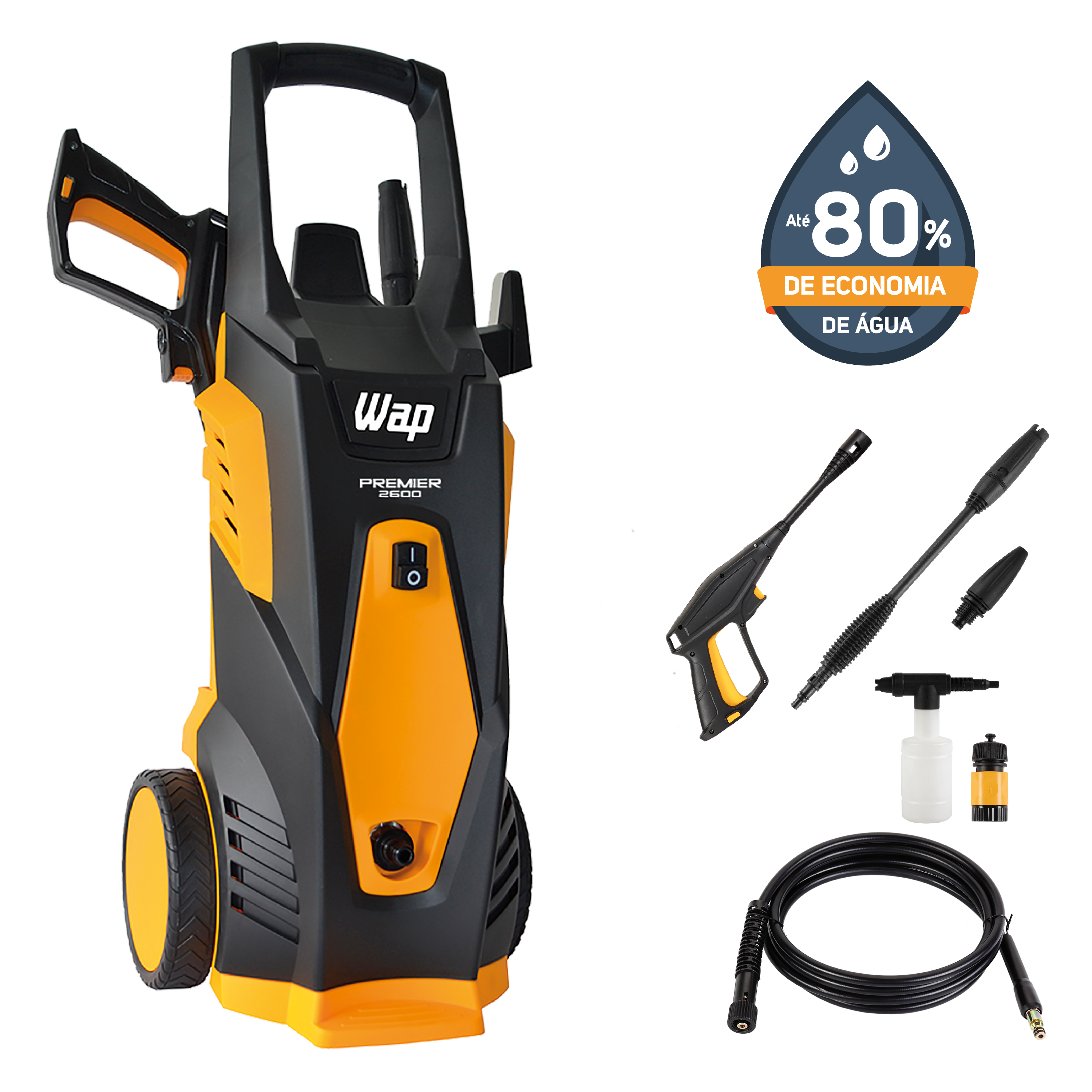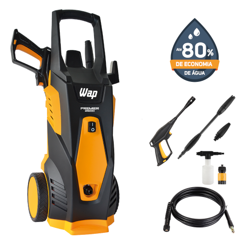 Potente, robusta e eficiente, a lavadora de alta pressão WAP Premier 2600 é a melhor opção para limpar as sujeiras mais profundas com rapidez e agilidade, economizando tempo e até 80% de água se comparada à mangueira comum. Com bico turbo, potência de 1800W e pressão máxima de 2000 PSI é o equipamento perfeito para a remoção de níveis incrustados de sujeira em diversos tipos de pisos e superfícies.