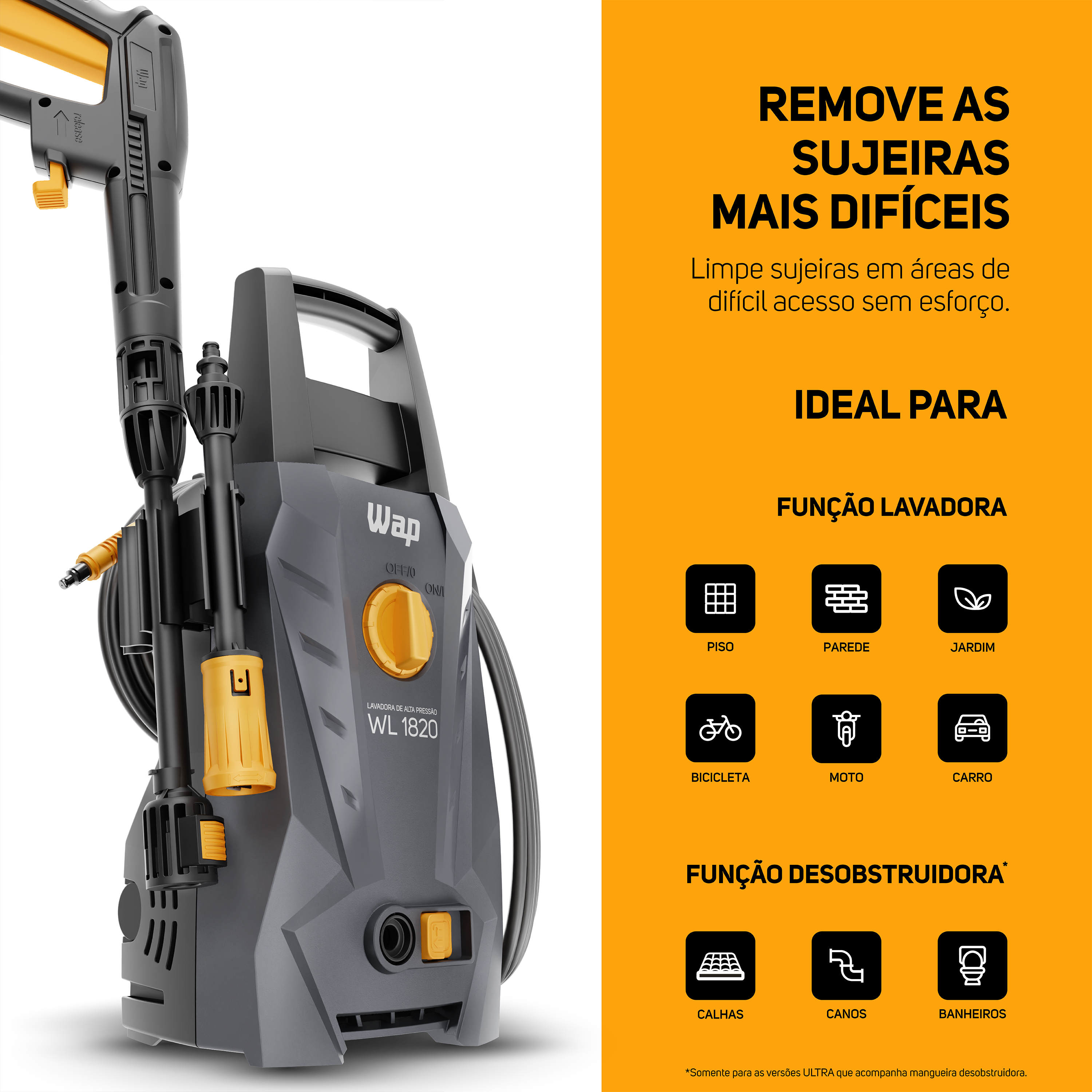 - Lavadora de Alta Pressão WAP WL 1820 1400W 1500PSI Máquina de Lavar com Bico Regulável Jato Leque e Concentrado 220V