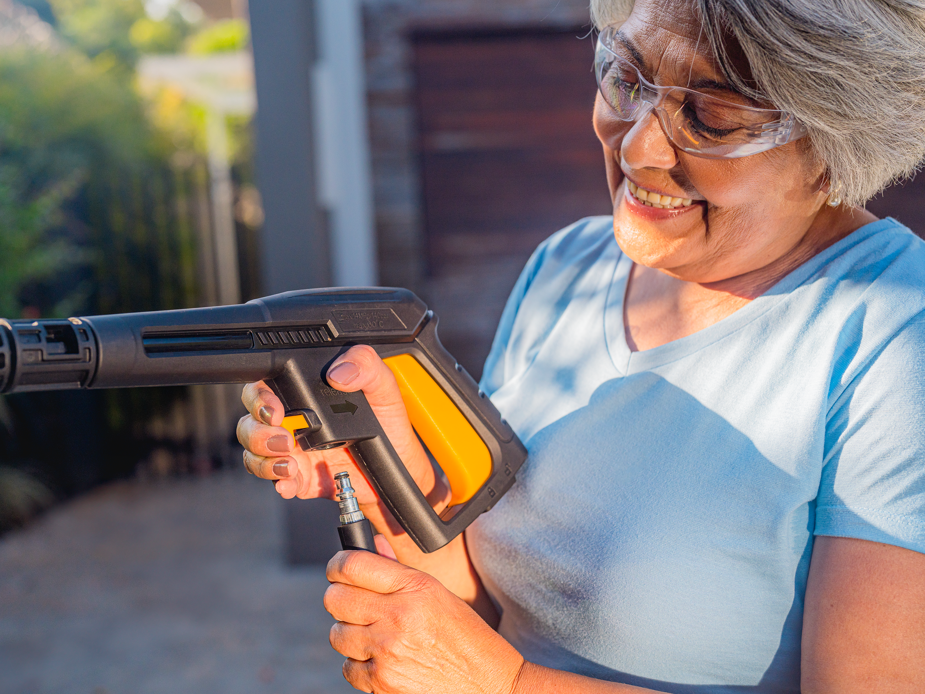- Com apenas um click, o engate rápido torna a tarefa de limpeza uma experiência descomplicada e eficaz.