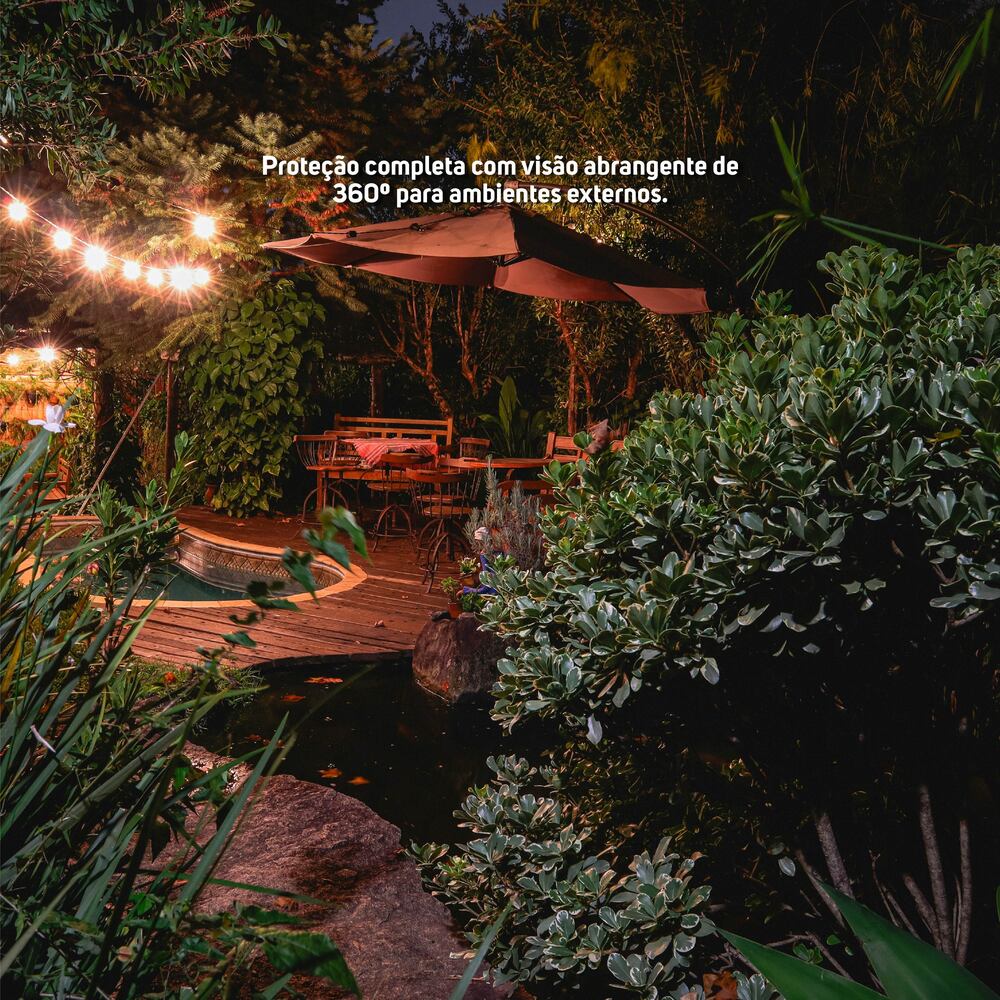 - Controle o ângulo da sua câmera em até 360° para uma visão ampla e completa.