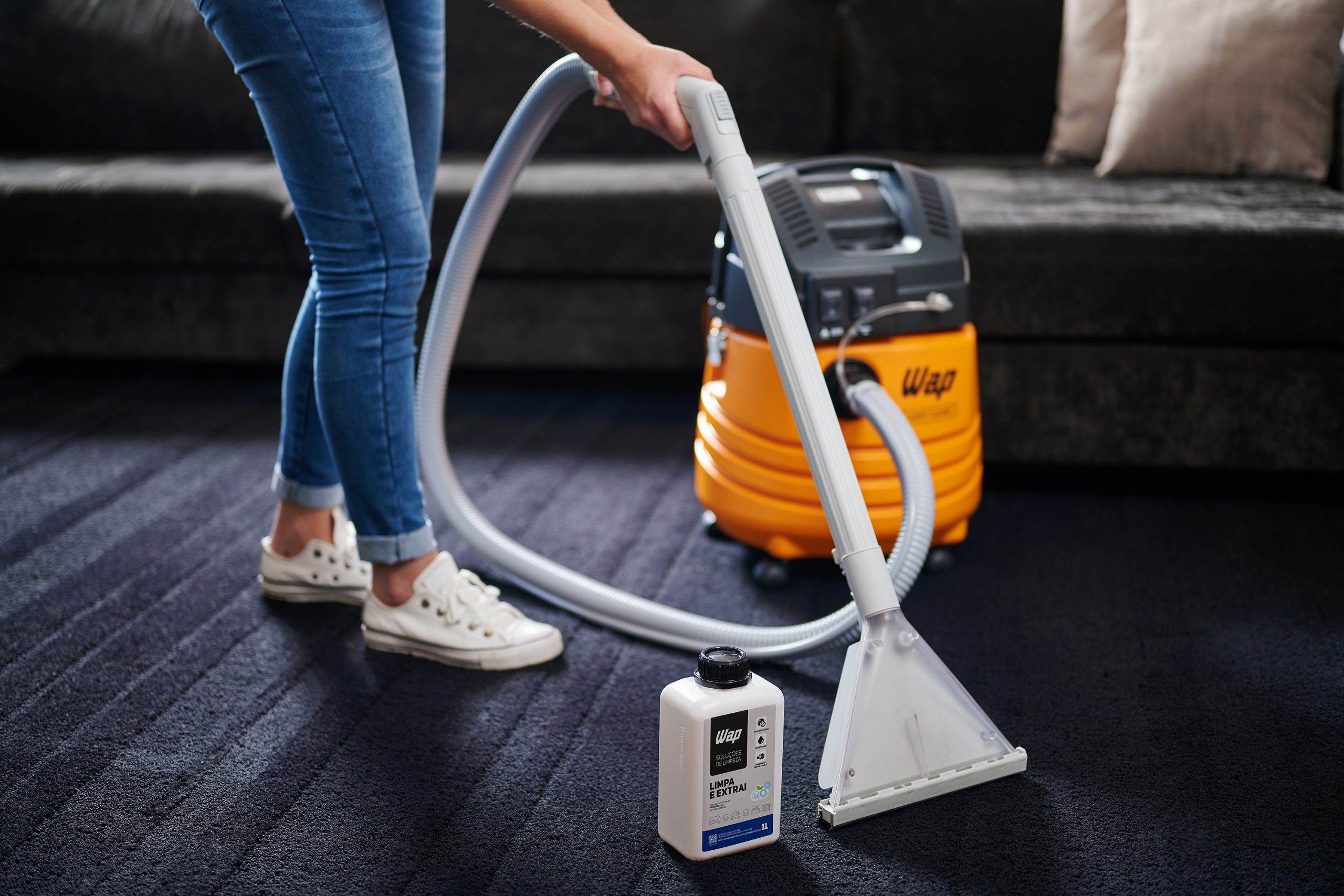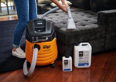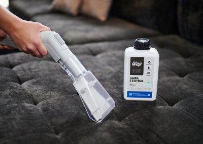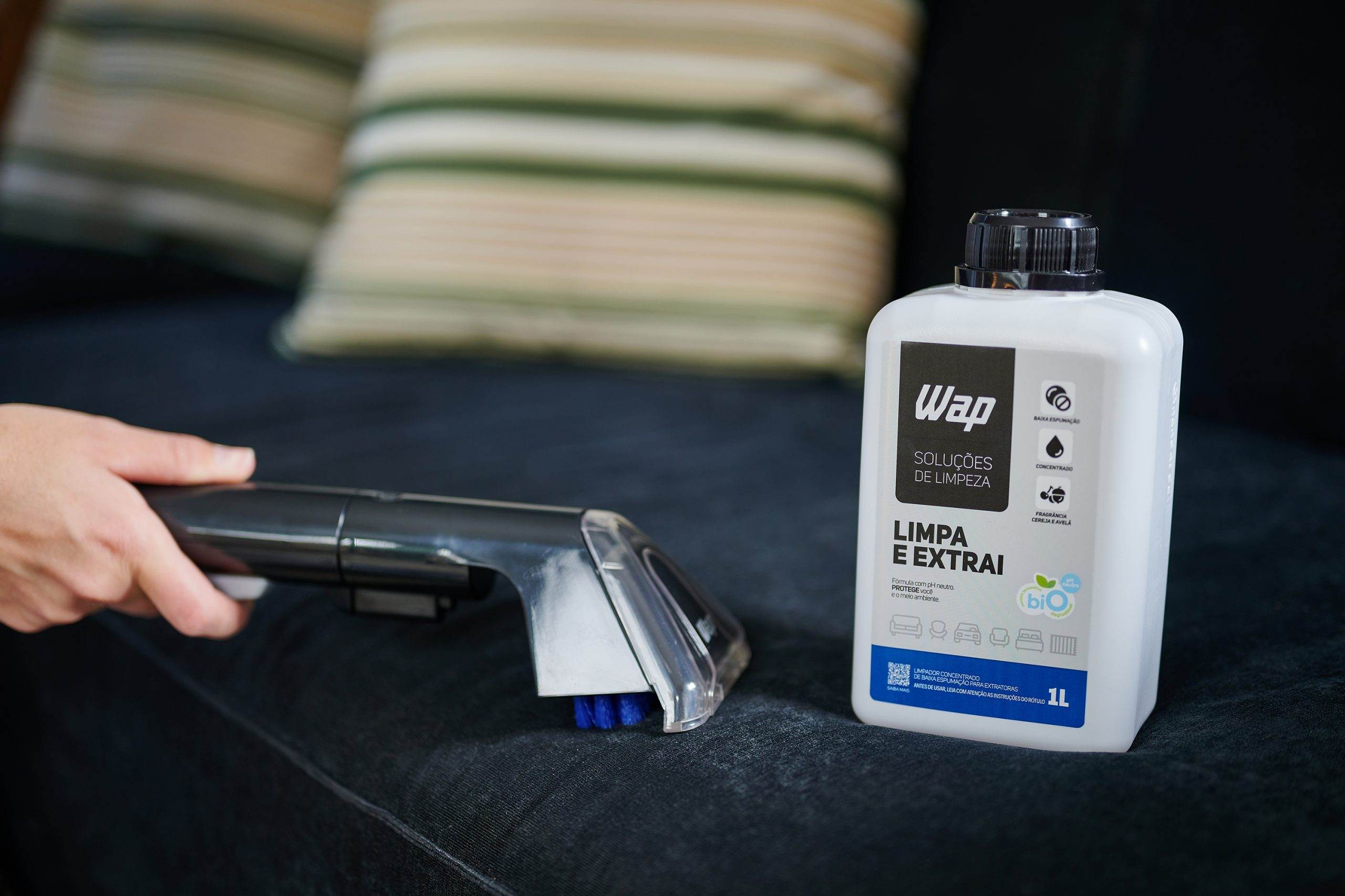 O WAP LIMPA E EXTRAI é um Limpador Concentrado de Baixa Espumação, indicado para o uso em Extratoras WAP para a limpeza de sofás, cadeiras, poltronas, estofados automotivos, colchões, tapetes e carpetes.