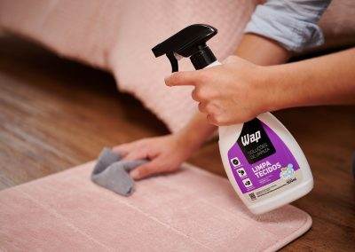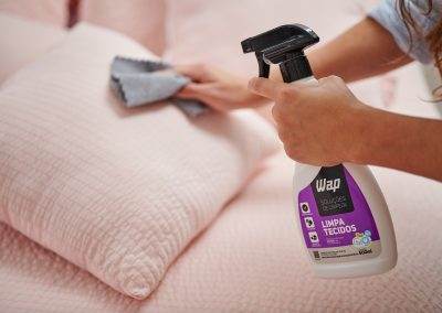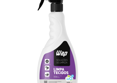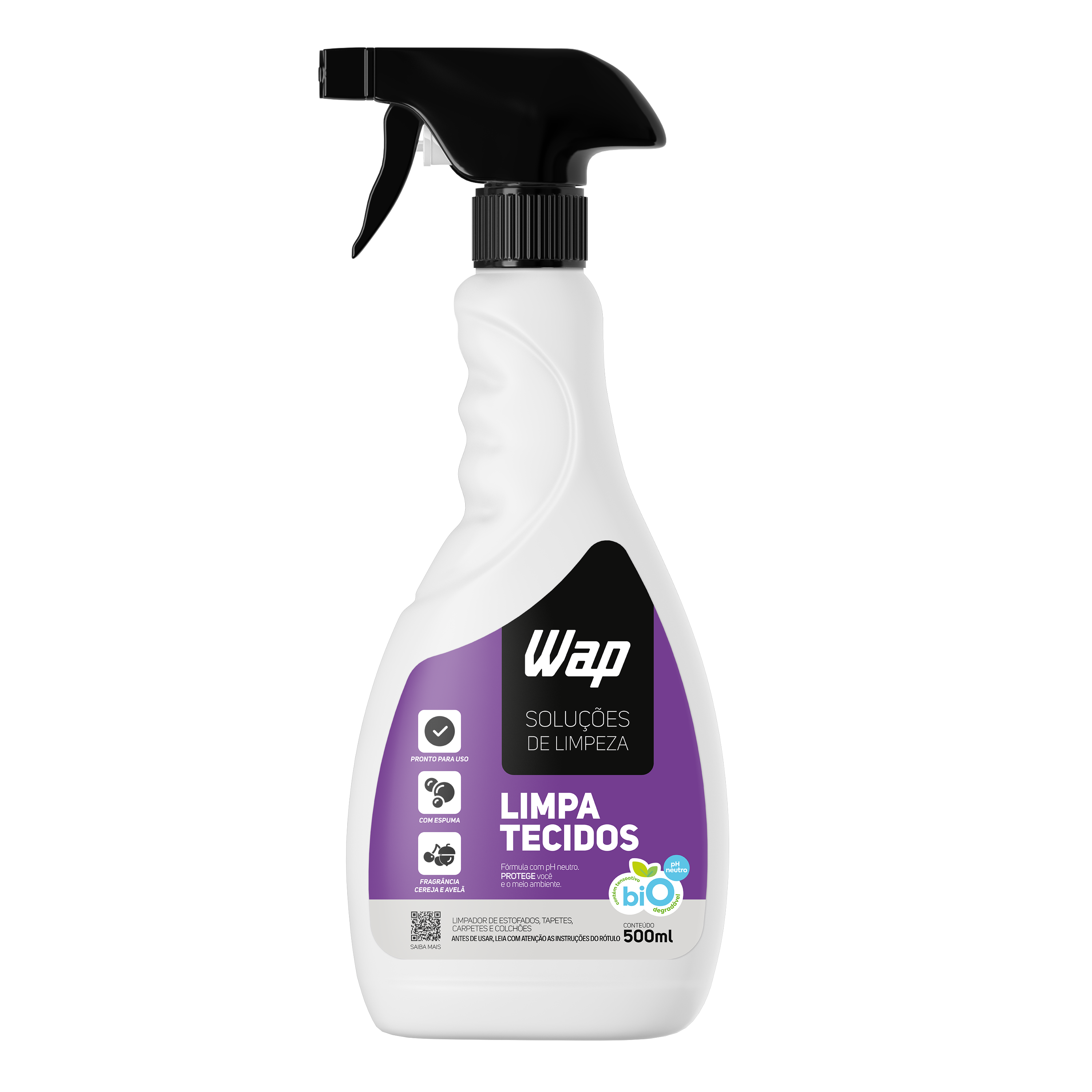 O WAP LIMPA TECIDOS é uma solução de limpeza elaborada para eliminar sujeiras de estofados, tapetes, carpetes, colchões e tecidos em geral. É ideal para a remoção de sujeiras orgânicas como poeira, poluição e gordura do corpo.