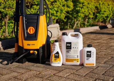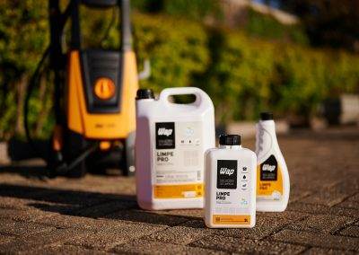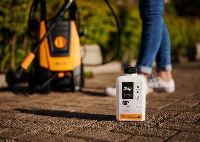 - Não. O Limpe Pro oferece grandes resultados com pouco esforço. Após a diluição do produto, deixe agir por aproximadamente 10 minutos. Esfregue com intensidade utilizando fibras, vassouras, acessórios de limpeza apropriados ou, em ambientes externos, simplesmente enxague utilizando uma lavadora de alta pressão WAP. Caso persista algum resíduo sobre a superfície, repita a operação.