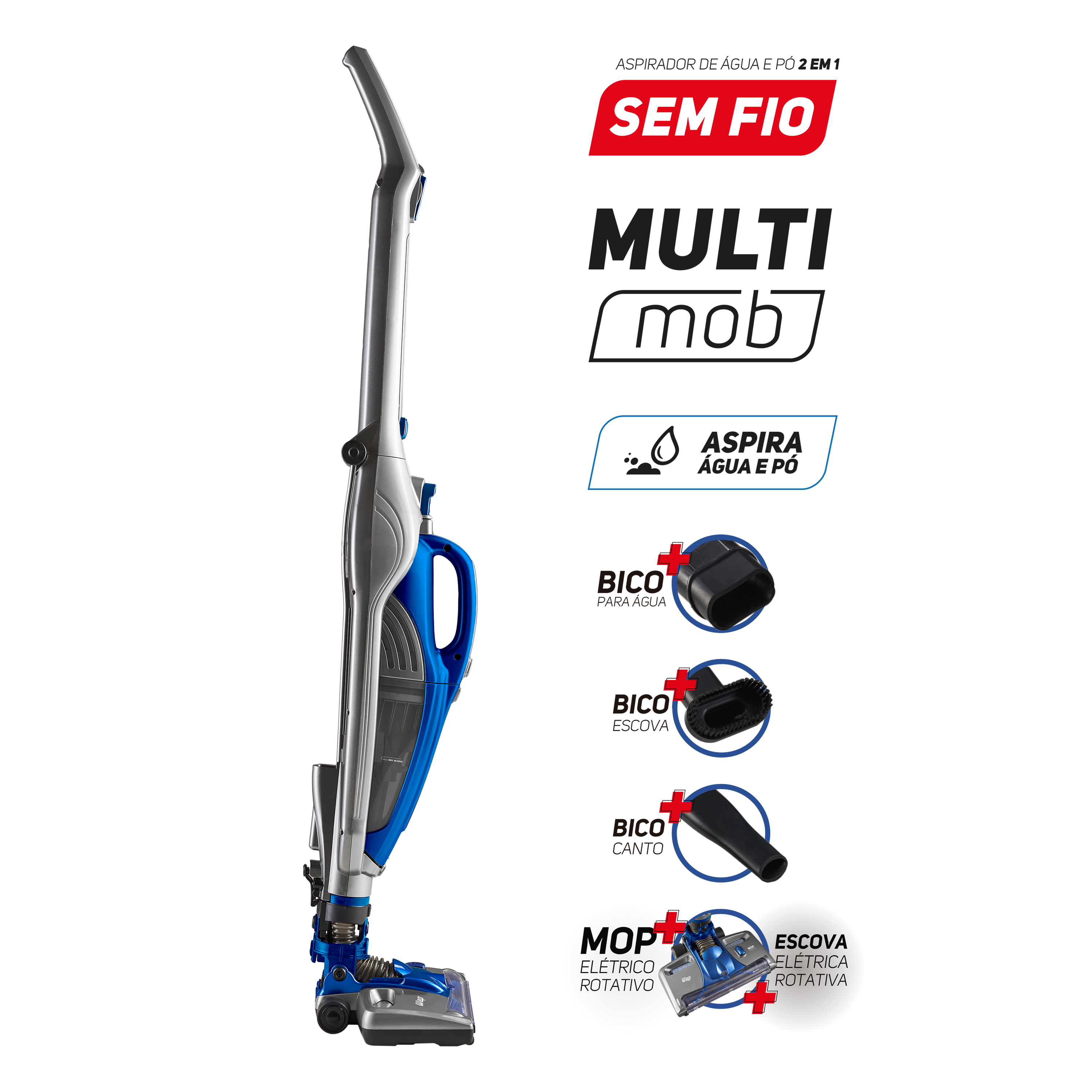 O Aspirador de Água e Pó Sem Fio WAP MULTI MOB 2 em 1 traz mais praticidade e funcionalidades para o seu dia a dia, deixando a limpeza da sua casa mais rápida e eficiente. É um grande aliado de quem possui animais de estimação, pois vem equipado com escova elétrica rotativa e MOP elétrico rotativo que auxilia na limpeza e no polimento de pisos.