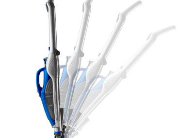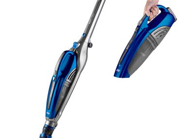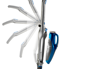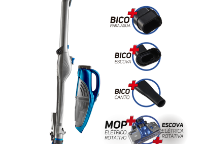 Além disso, sua dupla função permite que sejam aspirados locais altos, graças ao seu recipiente que pode ser desacoplado e transformado em um aspirador de mão portátil, perfeito para alcançar regiões de difícil acesso e limpar prateleiras e armários, por exemplo.
