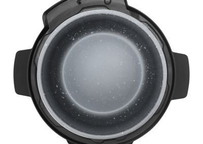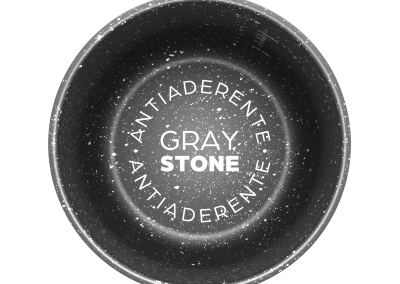 - A panela interna possui a camada antiaderente Gray Stone, que não permite que os alimentos grudem.