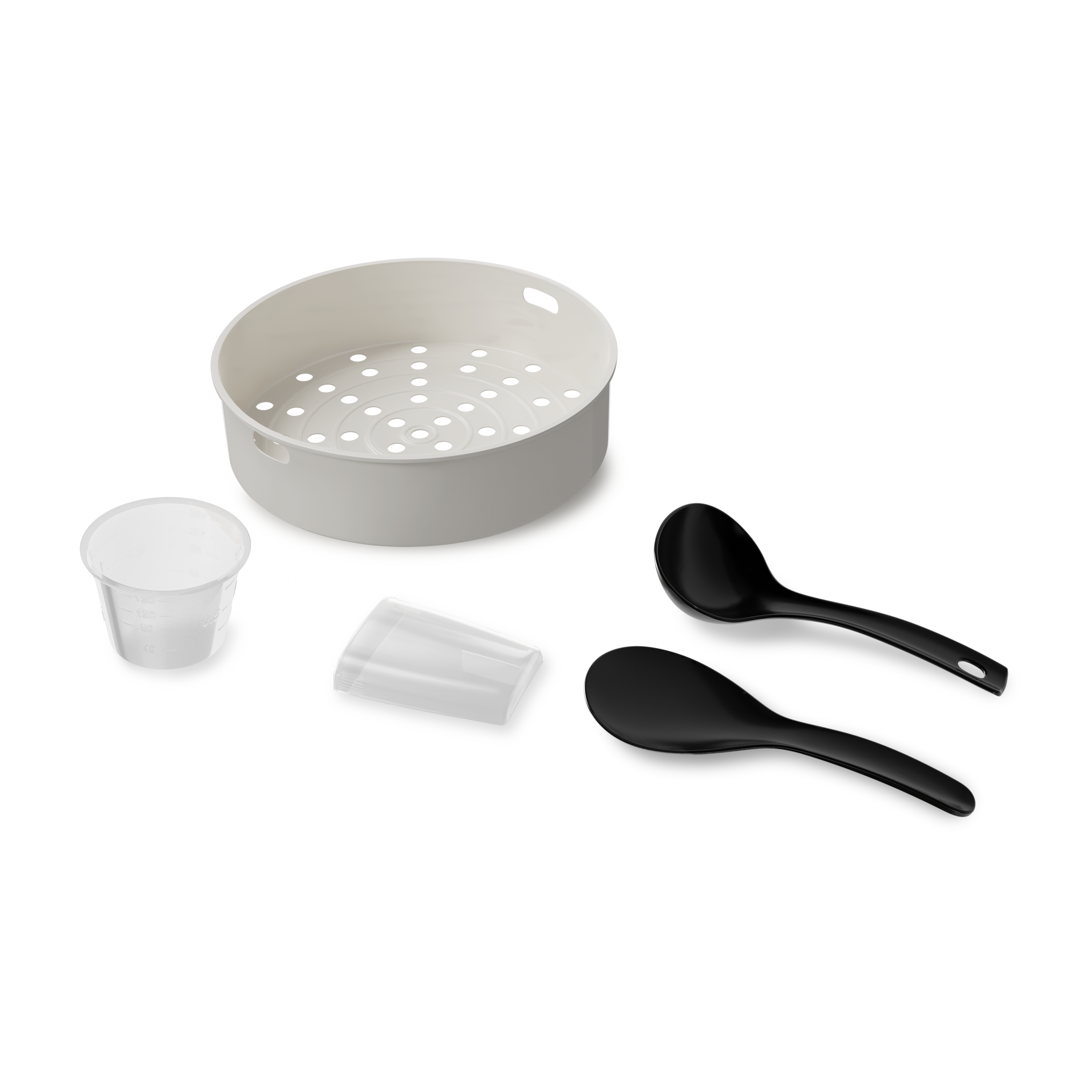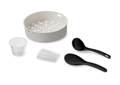 - Acompanha um conjunto completo de acessórios com: duas colheres, copo medidor, coletor de água e cesto de vapor.
