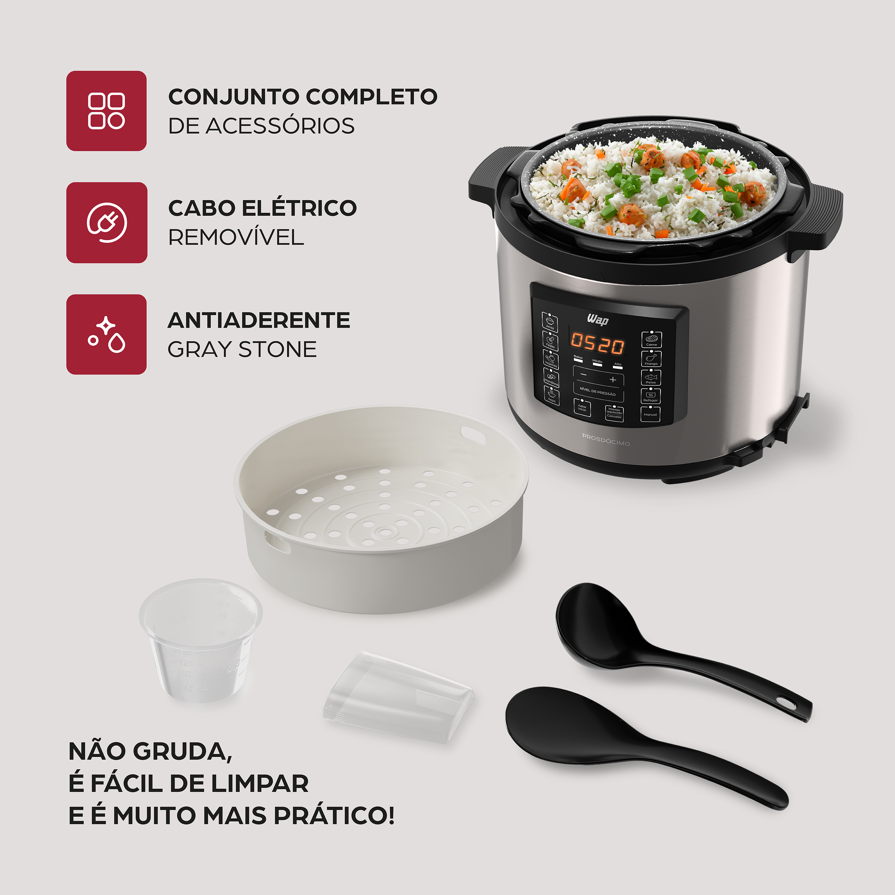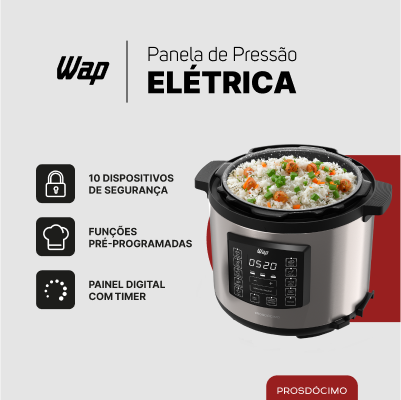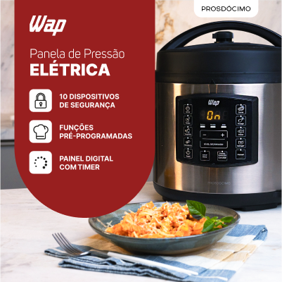 A Panela de Pressão Elétrica WAP vem para facilitar sua rotina, combinando praticidade e segurança, perfeita para fazer suas receitas com confiança e muito sabor.