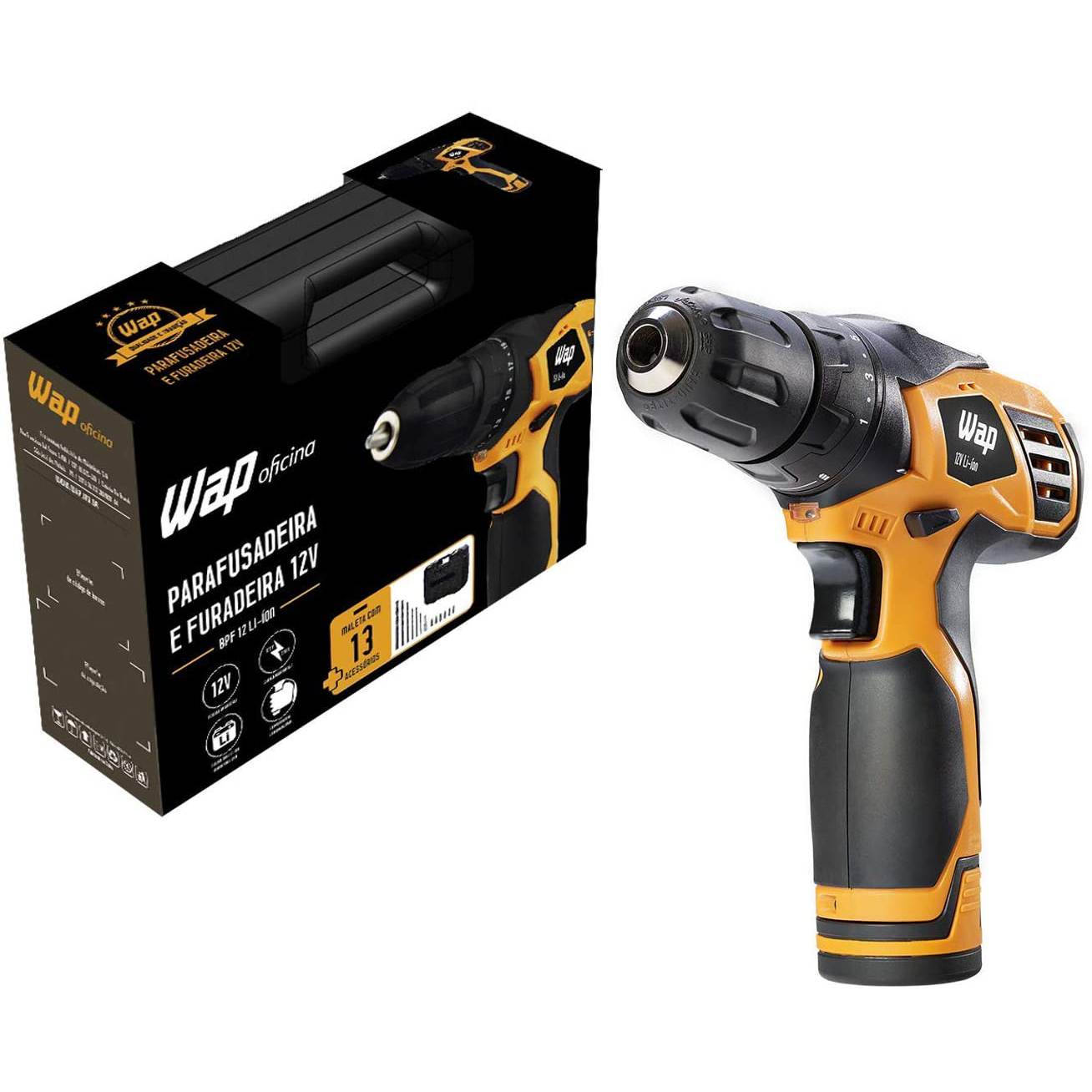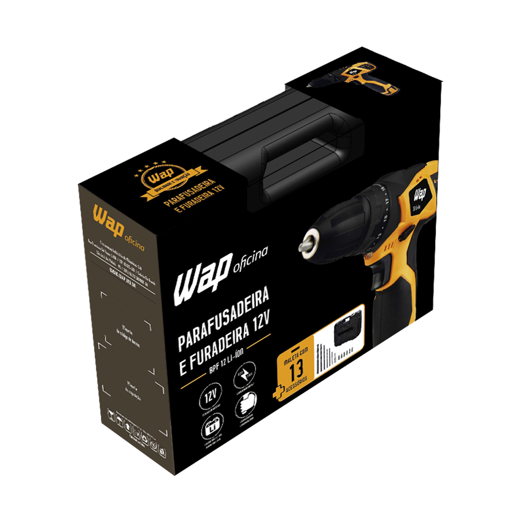 A WAP BPF 12V LI-ION vem com mandril de ajuste rápido e tem design ergonômico, com empunhadura emborrachada, que garante excelente usabilidade. Acompanha uma prática maleta para acondicionar a ferramenta e um kit de acessórios com 13 itens, entre eles um carregador bivolt. Uma solução da linha WAP Ferramenta, multiuso e movida a bateria, que poupa esforço e melhora a qualidade na execução de variadas tarefas.