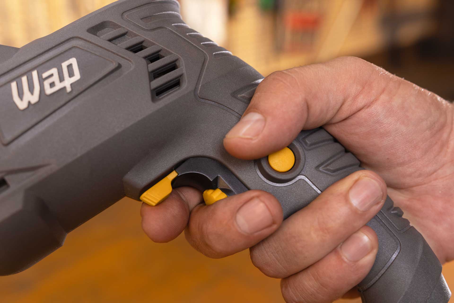 Durante tarefas contínuas exigentes, conte com a Parafusadeira e Furadeira WAP como a melhor aliada. Seu botão trava elimina a necessidade de manter o interruptor pressionado o tempo todo. Equipada com controlador de velocidade com diferentes níveis de velocidade, você tem liberdade para aplicar a força necessária nas operações do cotidiano.