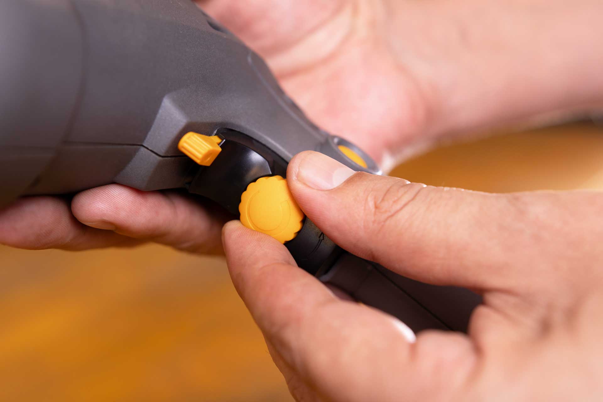 - Alterne entre diferentes modos de operação da ferramenta com o botão comutador, que permite realizar perfurações com ou sem impacto.