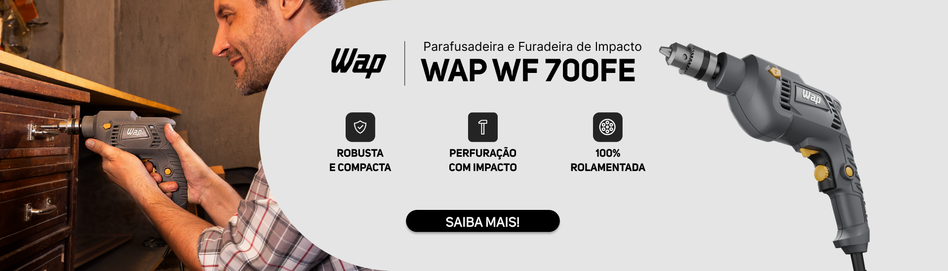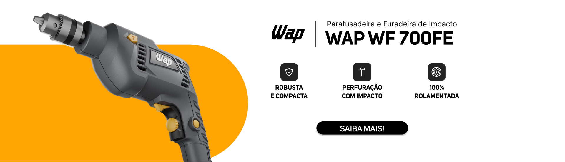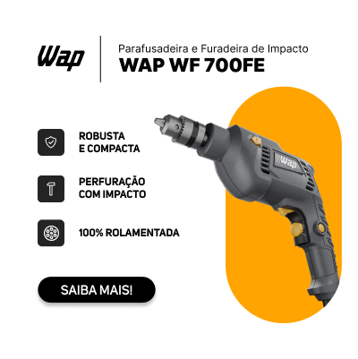 - A Parafusadeira e Furadeira de Impacto WAP WF 700FE reúne eficiência e força para e realizar perfurações mais rápidas, com um motor potente de 700W.